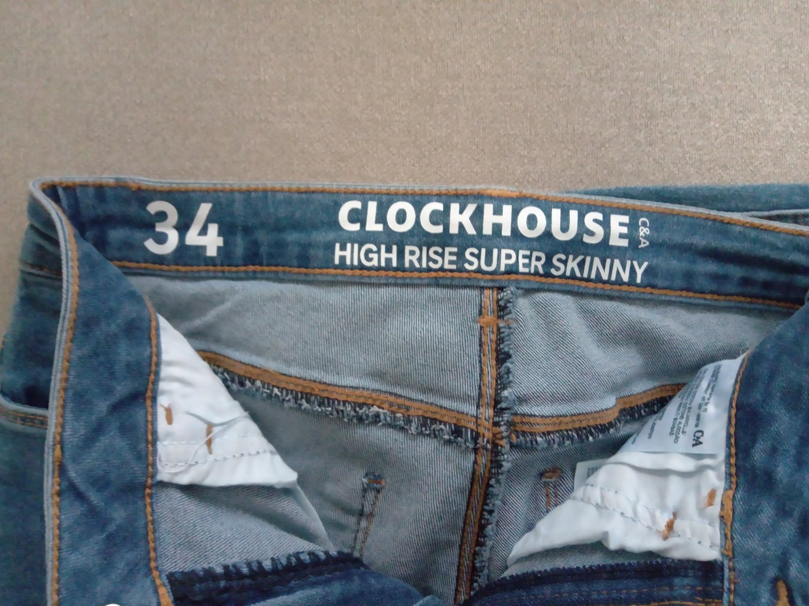 zachovalé pekne sadnúce rifle,stredne modrej farby,šírka -pás = 45 x 2 cm,PS = 26 cm,ZS = 40 cm,vonk.dlžka = 107 cm,vnút. dlžka = 82 cm,noha dolu = 18 cm, obsahuje 99 % ba,1% elastan,veľkosť vyfotená