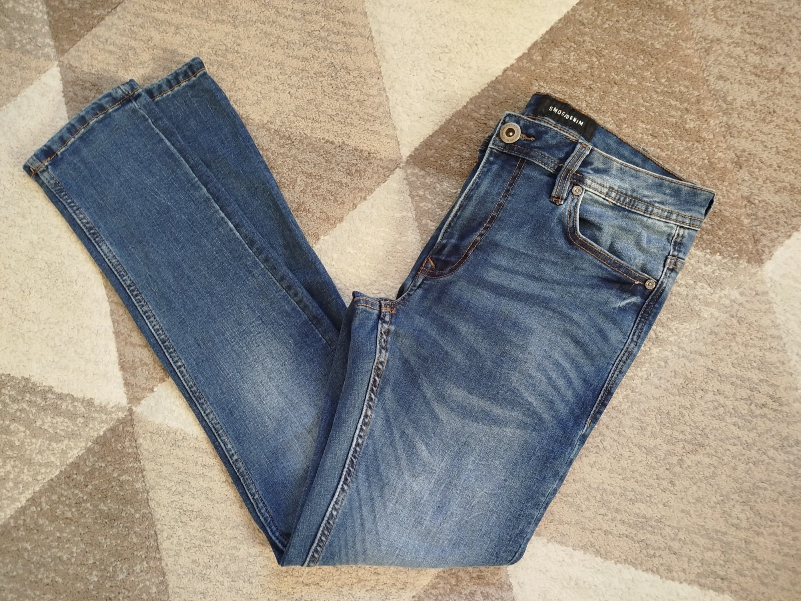 Chlapčenské rifle SMOG, veľkosť 28/30 v super stave. Syn ich mal len pár krát, boli mu hneď malé. Vďaka elastanu sú veľmi pohodlné. Dĺžka 102cm, pás v kľude 38cm a natiahne sa do 42cm. Cena + pošta.
