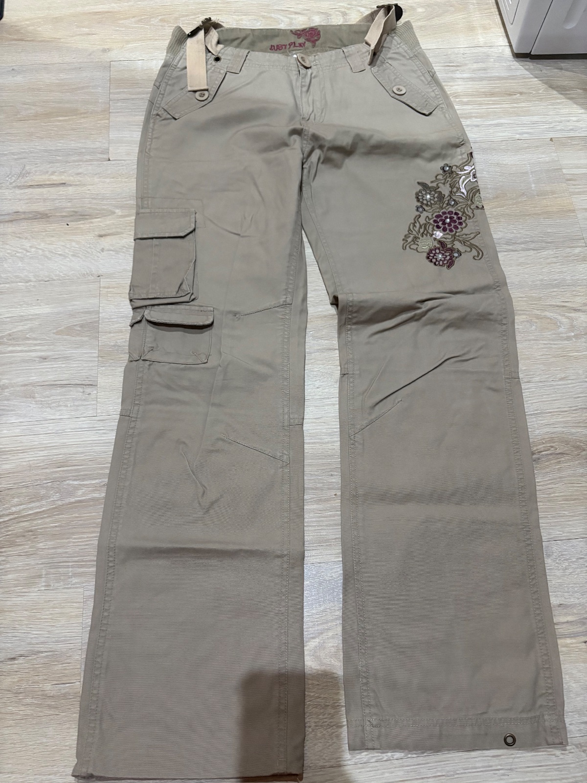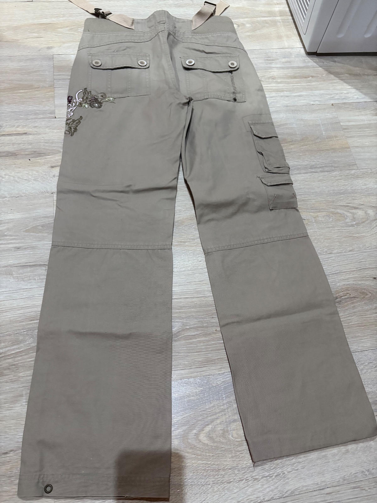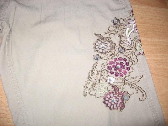 sportove nohavice su ok stav jedine dolu trosku suchnute vid foto maju pekne aplikacie kvietky je to vysite zapinanie gombik zips,vrecka v predu aj vzadu pas ma gumu da sa stiahnut v pase velkost m celkova dlzka109,8CM,od rozkroku dolu 82,7CM,pas41CM...posta1,60 obycajne