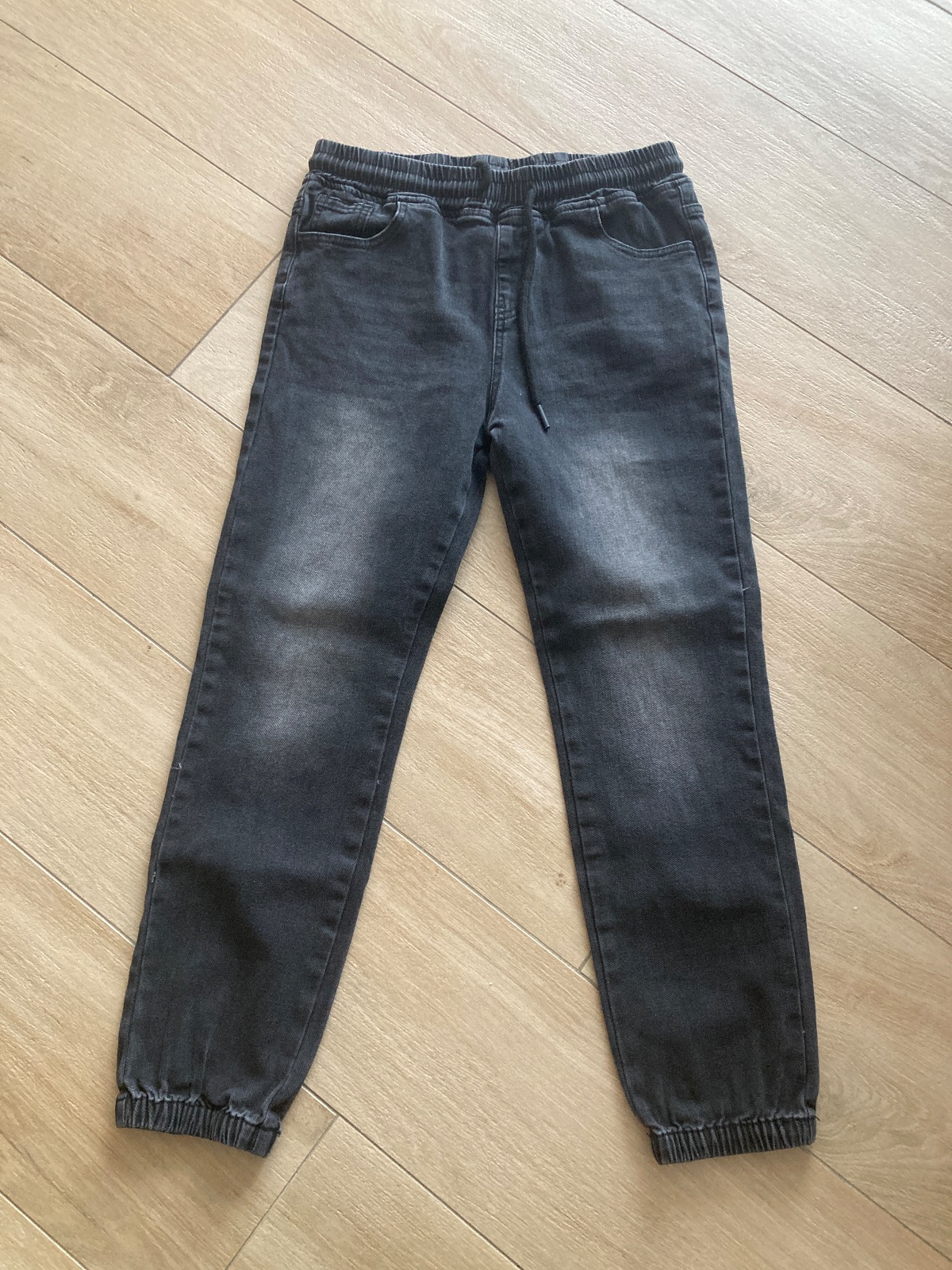 Nikdy nenosené, hrubšie, strečové, mäkké a pohodlné, v páse guma a šnúrka, vpredu aj vzadu dve vrecká, sú voľnejšie, celková dĺžka 88 cm, od rozkroku nadol 63 cm, obvod pásu v klude 70 cm.
