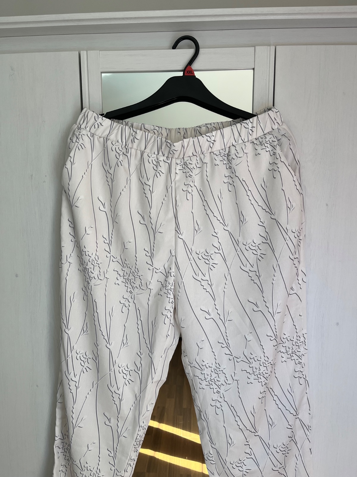 Dĺžka 103cm, šírka v páse na voľno 43cm a natiahnu sa na 58cm.sirka v bokoch 62cm, šírka stehna 33cm, šírka v kolene 28cm., sirka úplne dolu 21cm.