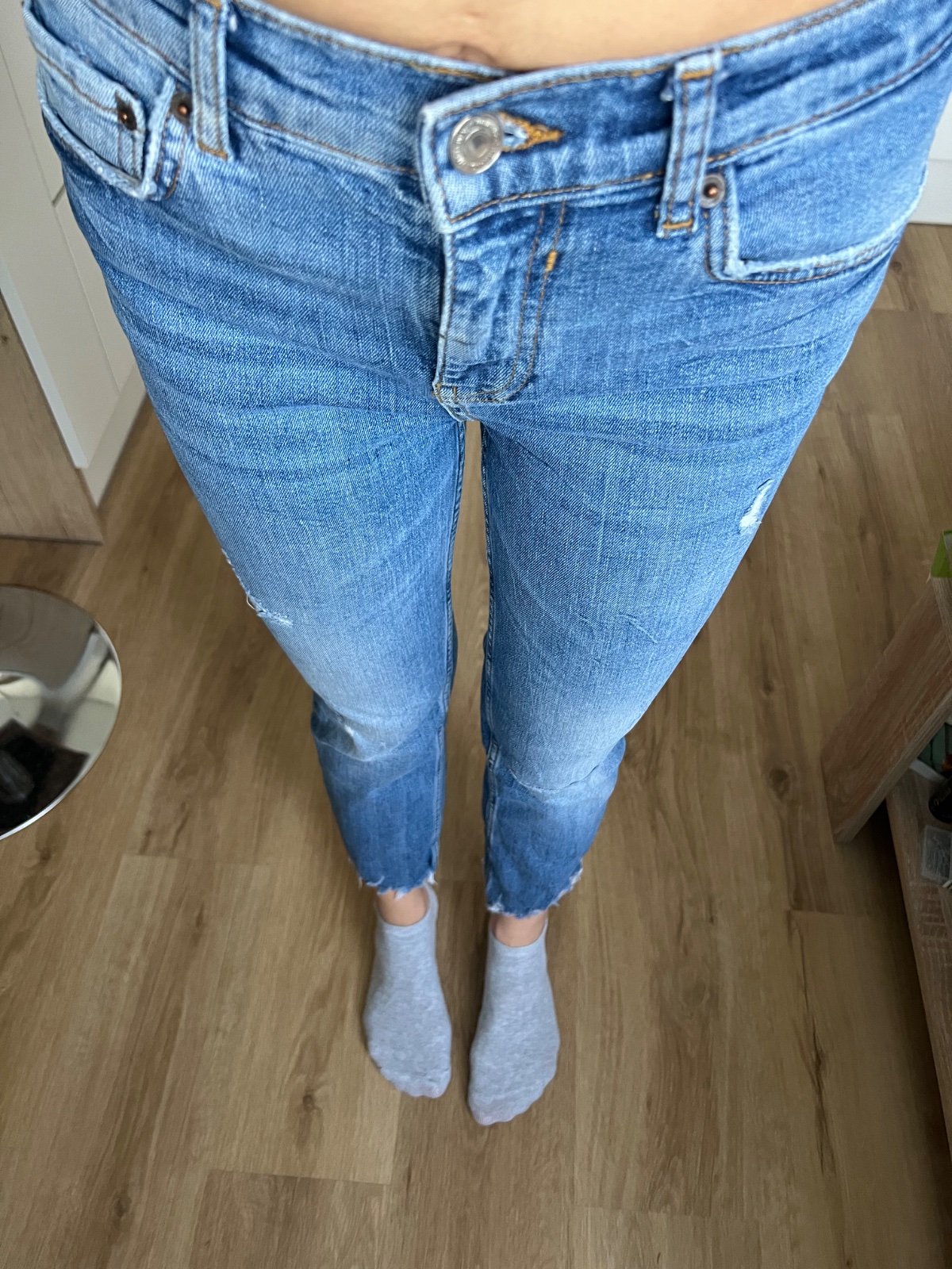 Nosené minimálne, bez poškodení. Veľkosť sadne možno aj na menšie S (pri nenatiahnutom stave 34cm, sú ale elastické natiahnú sa aj na tých 36cm). Farba svetlomodrá ako na poslednej fotke.
