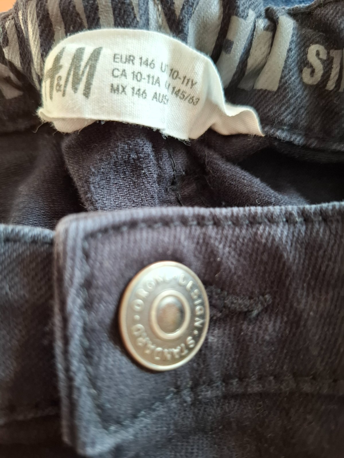 Predám nohavice H&M, čierna farba, veľkosť: 146, kupované nové, po jednom dieťati, vo výbornom stave, bez poškodení, bez fľakov, rozmery viď foto.