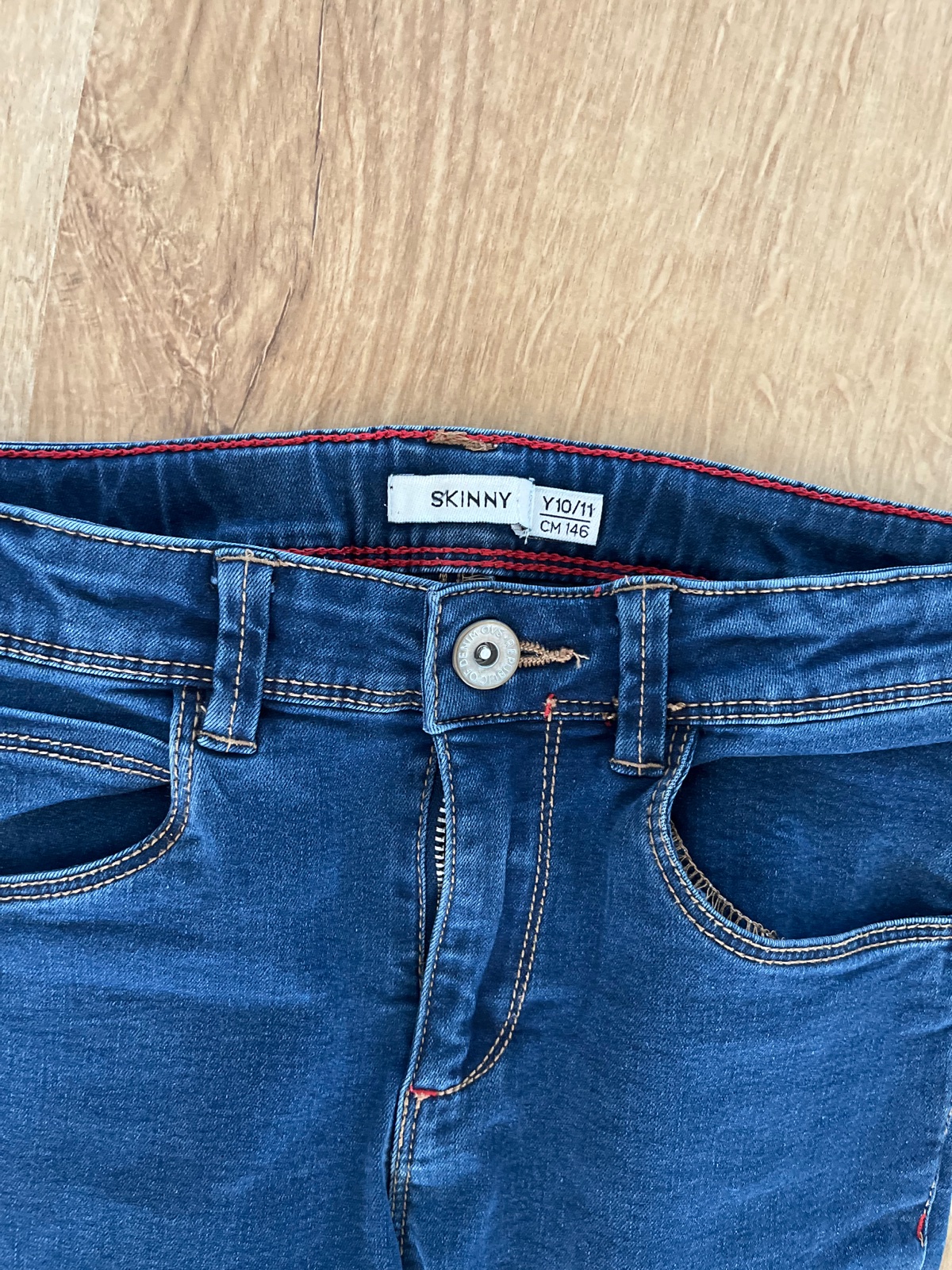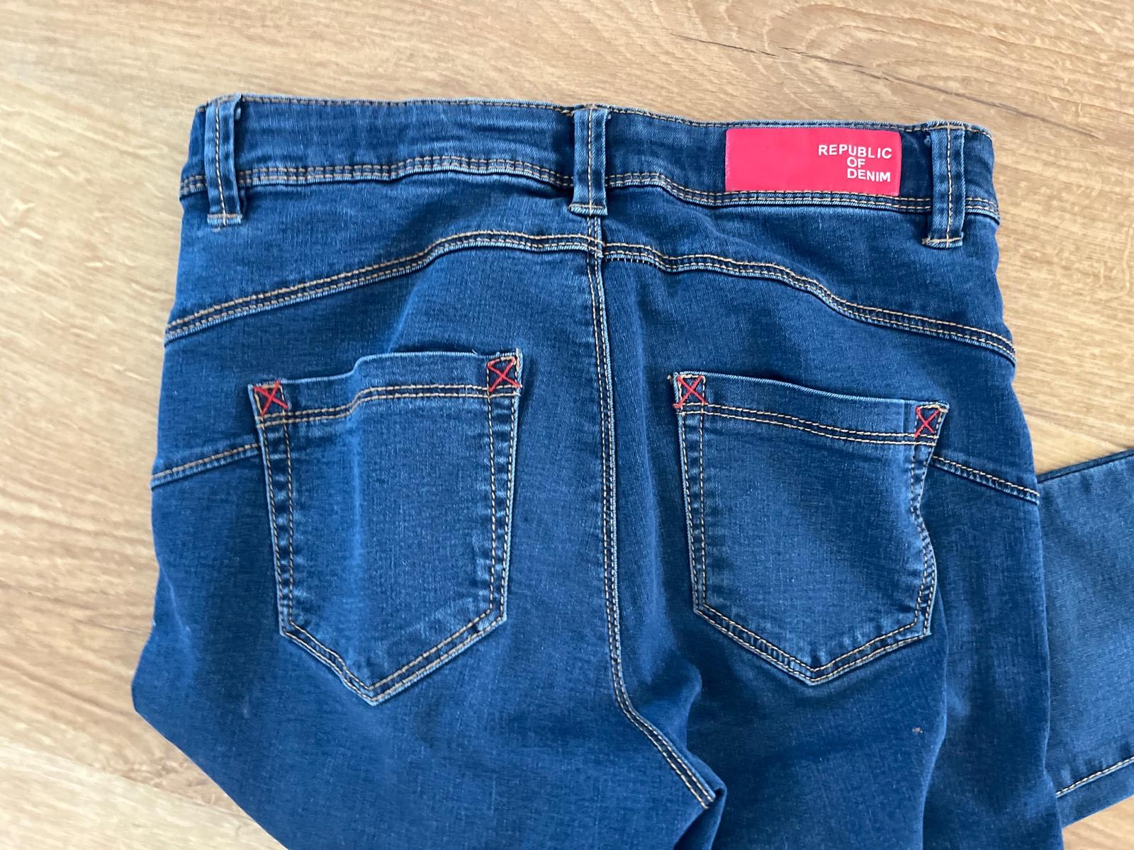 Predam dievcenske rifle zn.Skiny, vel.146, rozmery vo fotkach, cena 8 eur