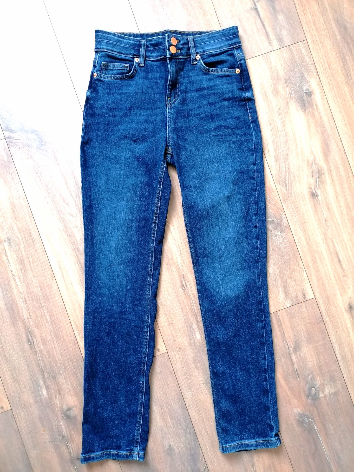 1x oblečené rifle, elastické, prisposobia sa postave. Dĺžka 99 cm, pas 35 - 38 cm. Top stav.