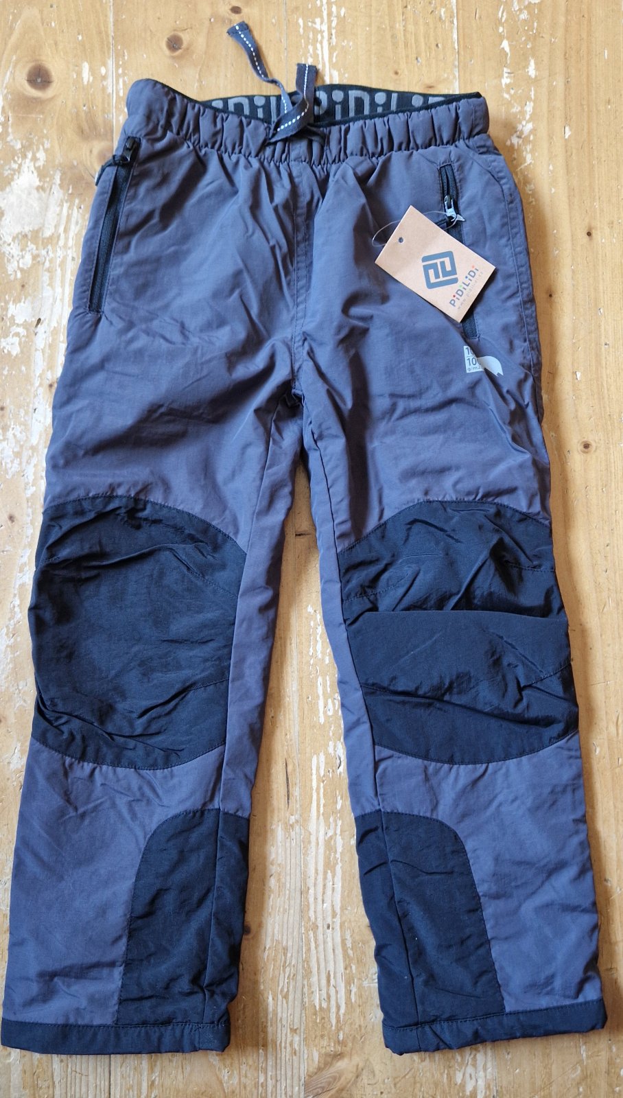 Nenosene detske turisticke nohavice, podsite flisom, oderuodolna latka, vodeodolne (stlpec 1000). Velkost 122, znacka Pidilidi, vrecka na zips, reflexne detaily.