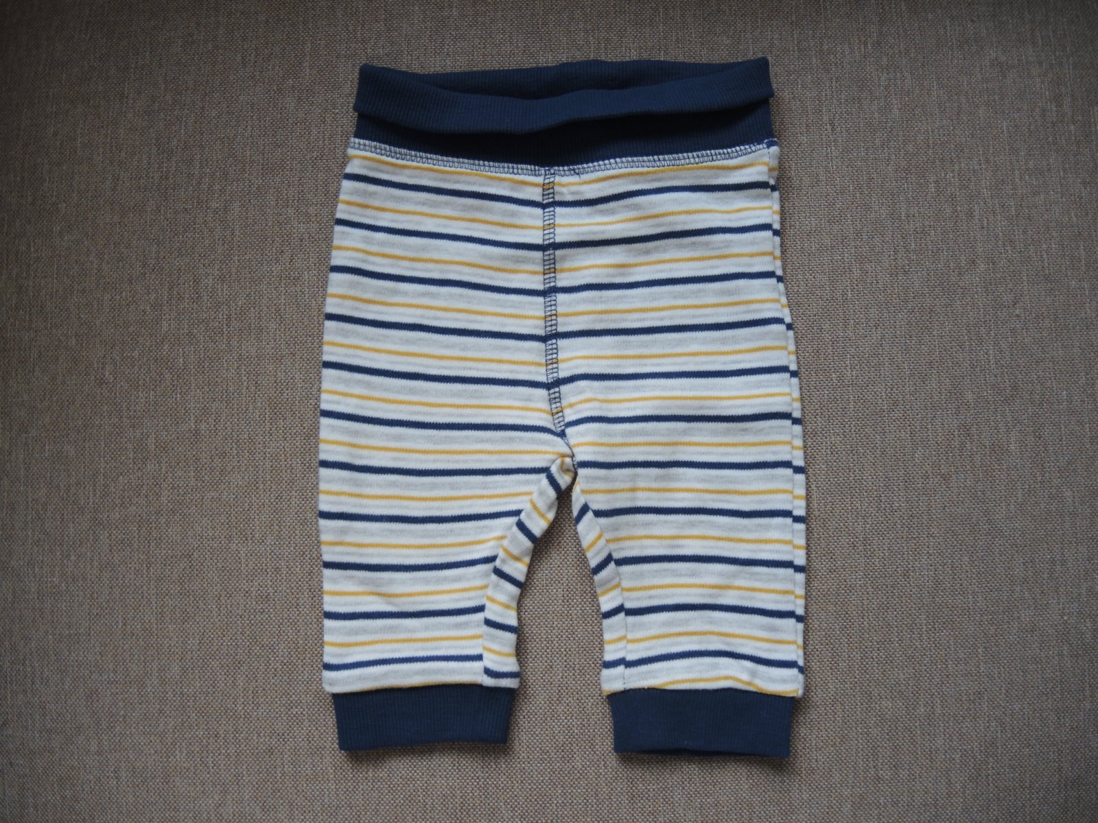 Predám krásne bavlnené pásikavé tepláčiky vo farbách tmavo modrá, svetlo šedá a horčicová. Pás sa dá vytiahnuť, na foto je zahnuté ... Mali sme ich pár krát, ale sú v peknom používanom stave. Nemajú žiadne žmolky... Celková dĺžka je 35 cm (pás má hrúbku 6 cm), od nohy po rozkrok je 15,5 cm. Pás je 20 cm v kľude.