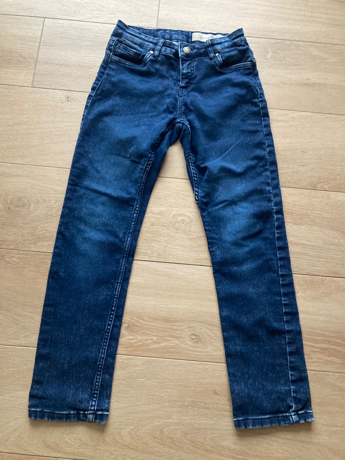 Bez poškodení, hrubšie, zapínanie na zips a gombík, nastaviteľný pás, mäkké, elastické, vzadu aj vpredu po dve vrecká, obvod pásu v kľude 68 cm, bočná dĺžka 91,5 cm, od rozkroku nadol 69 cm.