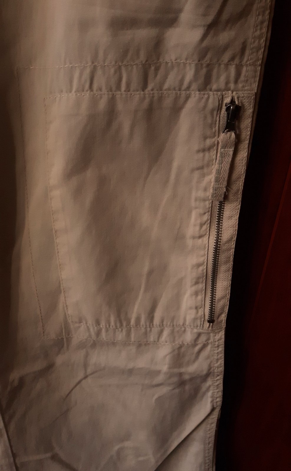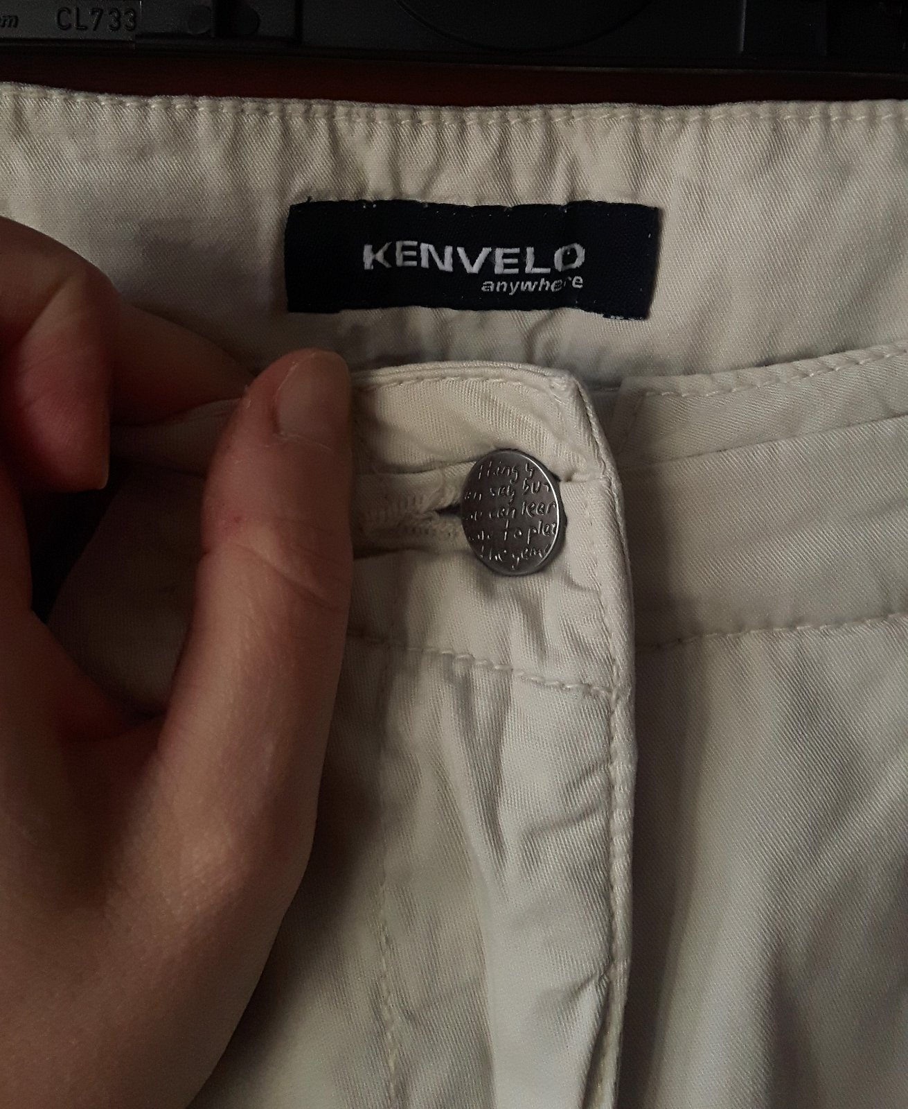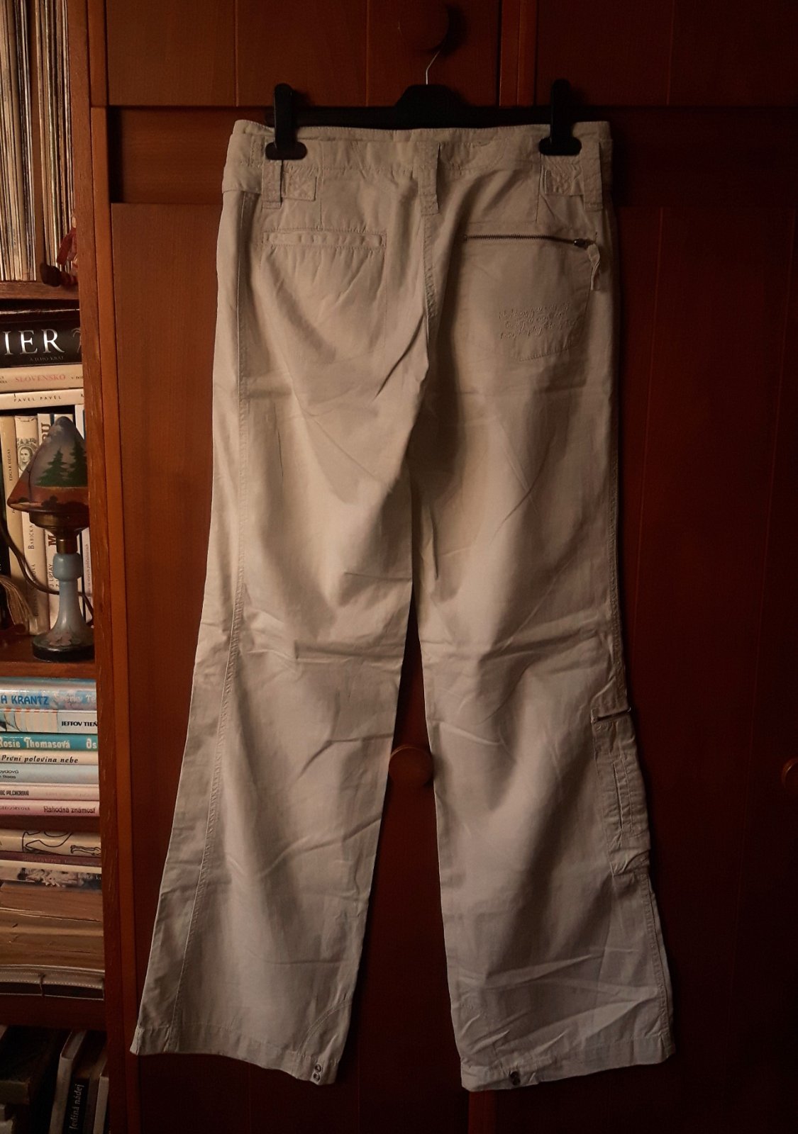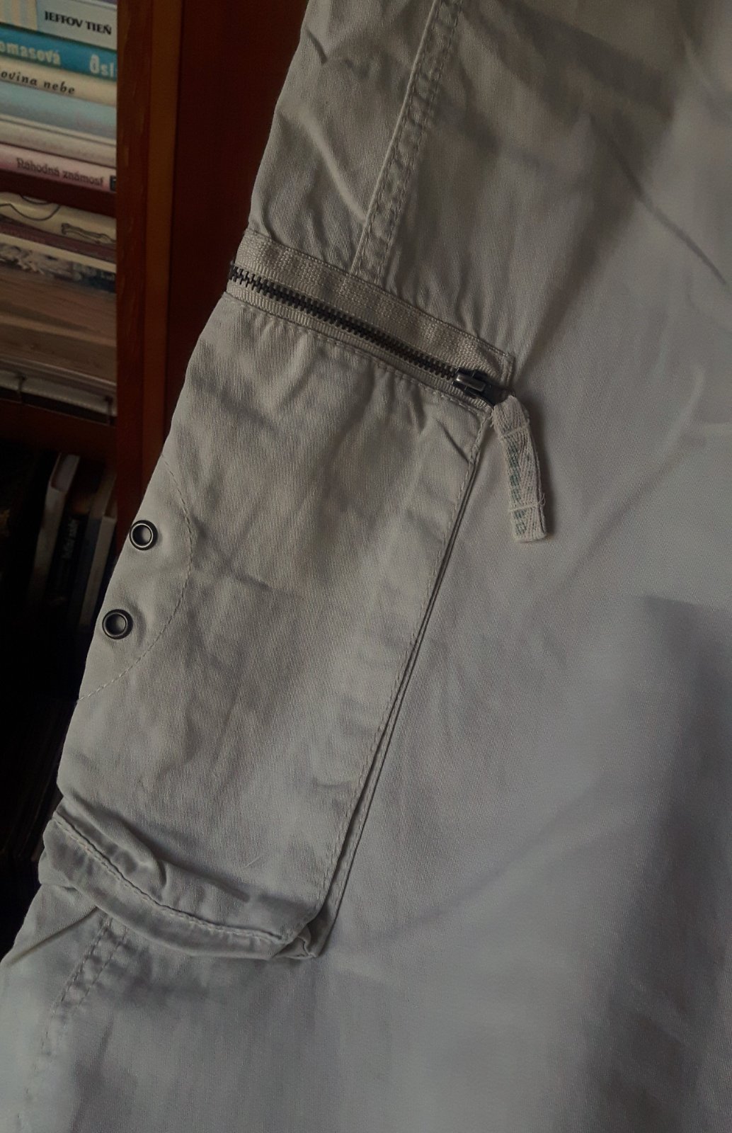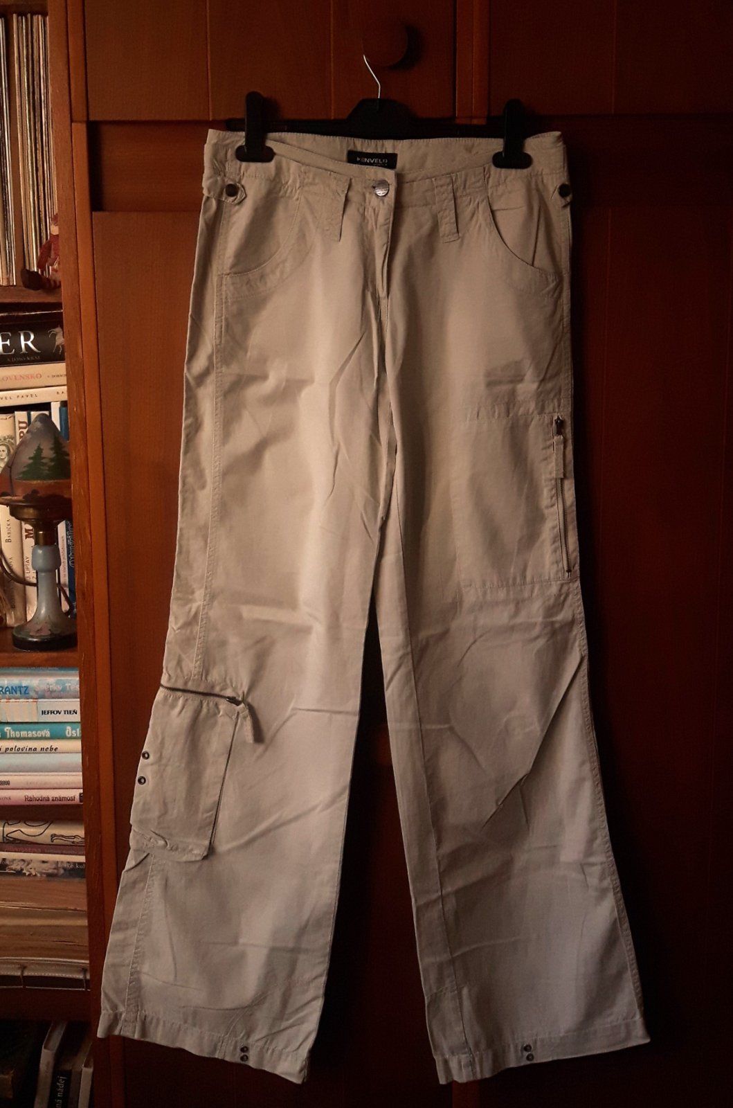 Bledé - krémové až do biela sfarbené nohavice s vreckami po bokoch. Dĺžka nohavíc je 103 cm a šírka v páse je 39 cm. Značka KENVELO, 100% bavlna - skôr na leto, alebo teplejšiu jeseň. Veľkosť XS/S Bez poškodení!