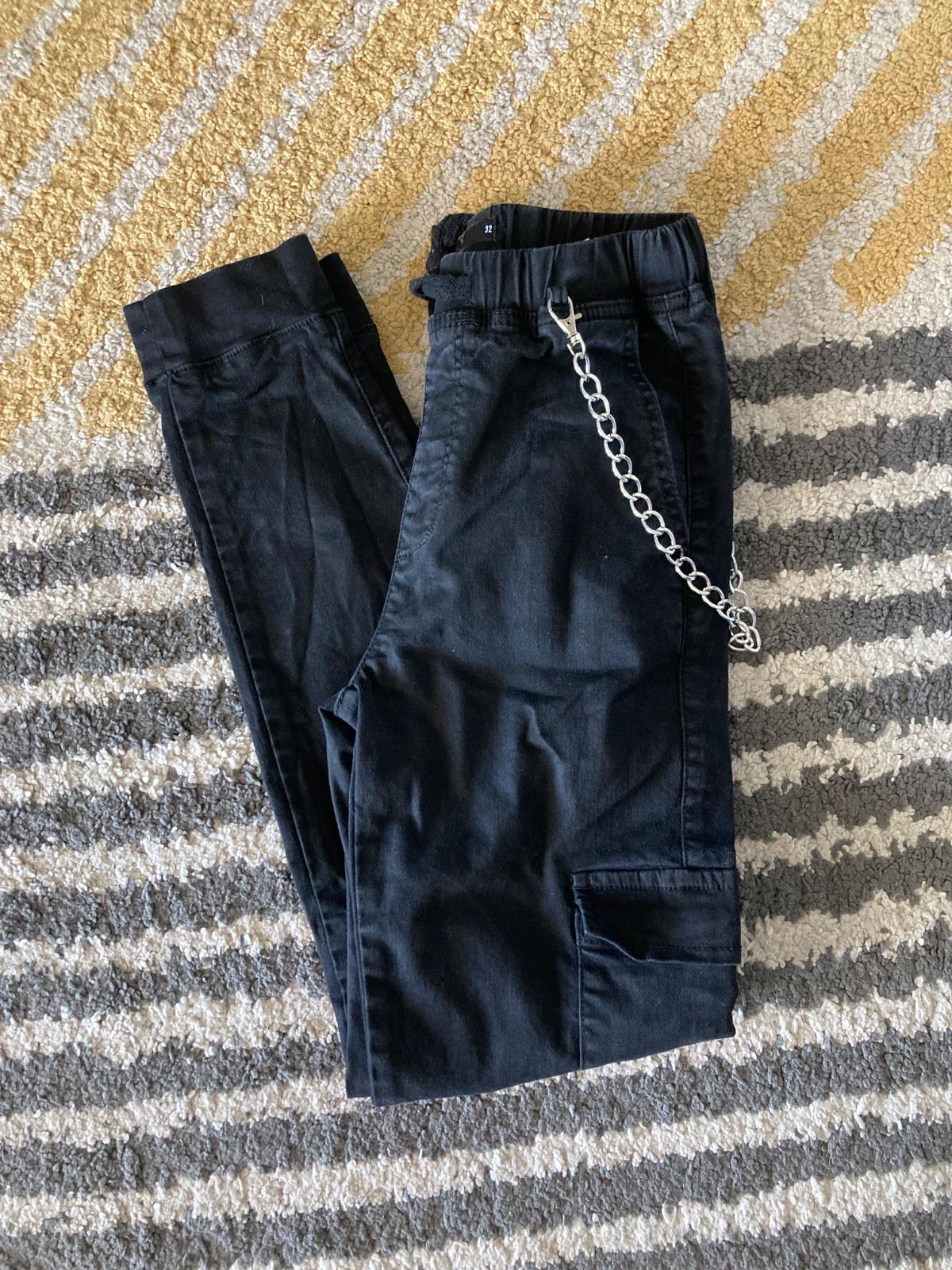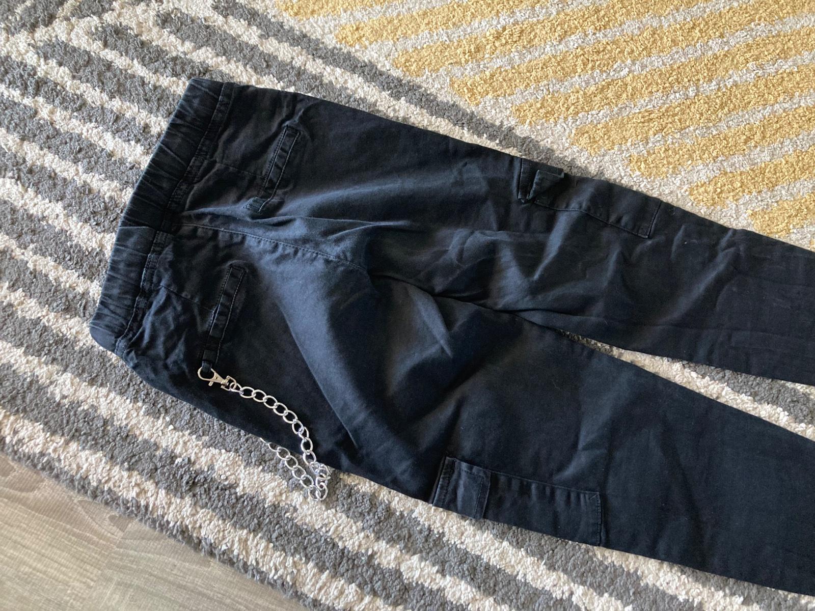 Veľmi pekný stav, krásne kvalitné, parkrát oblečené, kapsáčové a s retiazkou, majú už ale bledšiu farbu, bez žmolkov, slim strih, elastické, značka Cropp