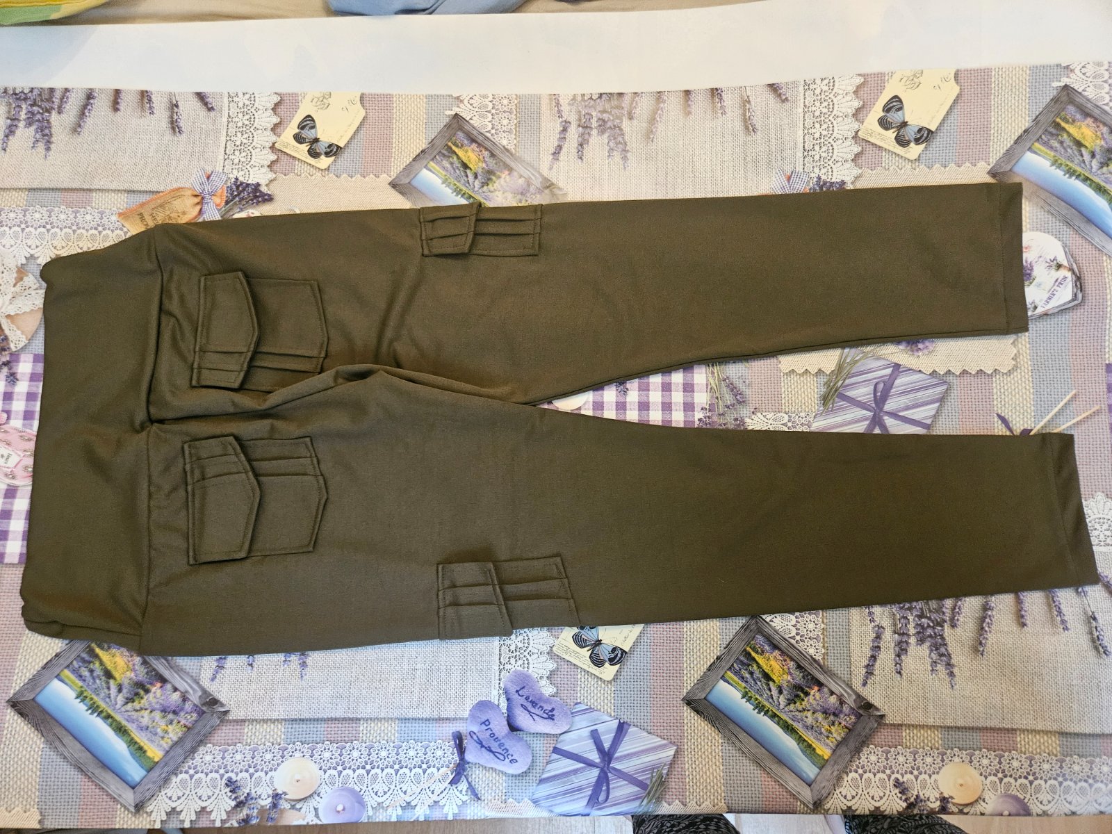 Maskáčové jegginsy úzkeho strihu, bez poškodenia. Dĺžka 89 cm, pás do gumy 78-86 cm. Zadný sed 30 cm.