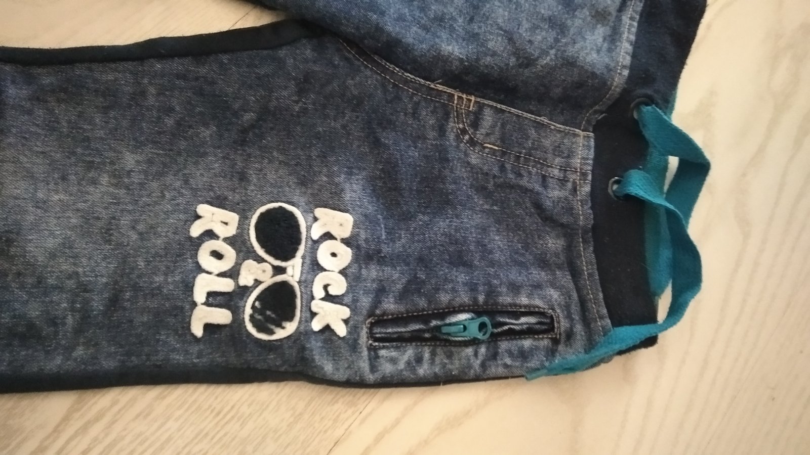 Dobrý noseny stav, na páse a dole na patentoch zmolky, riaďte sa rozmermi, pre 3/4 roky