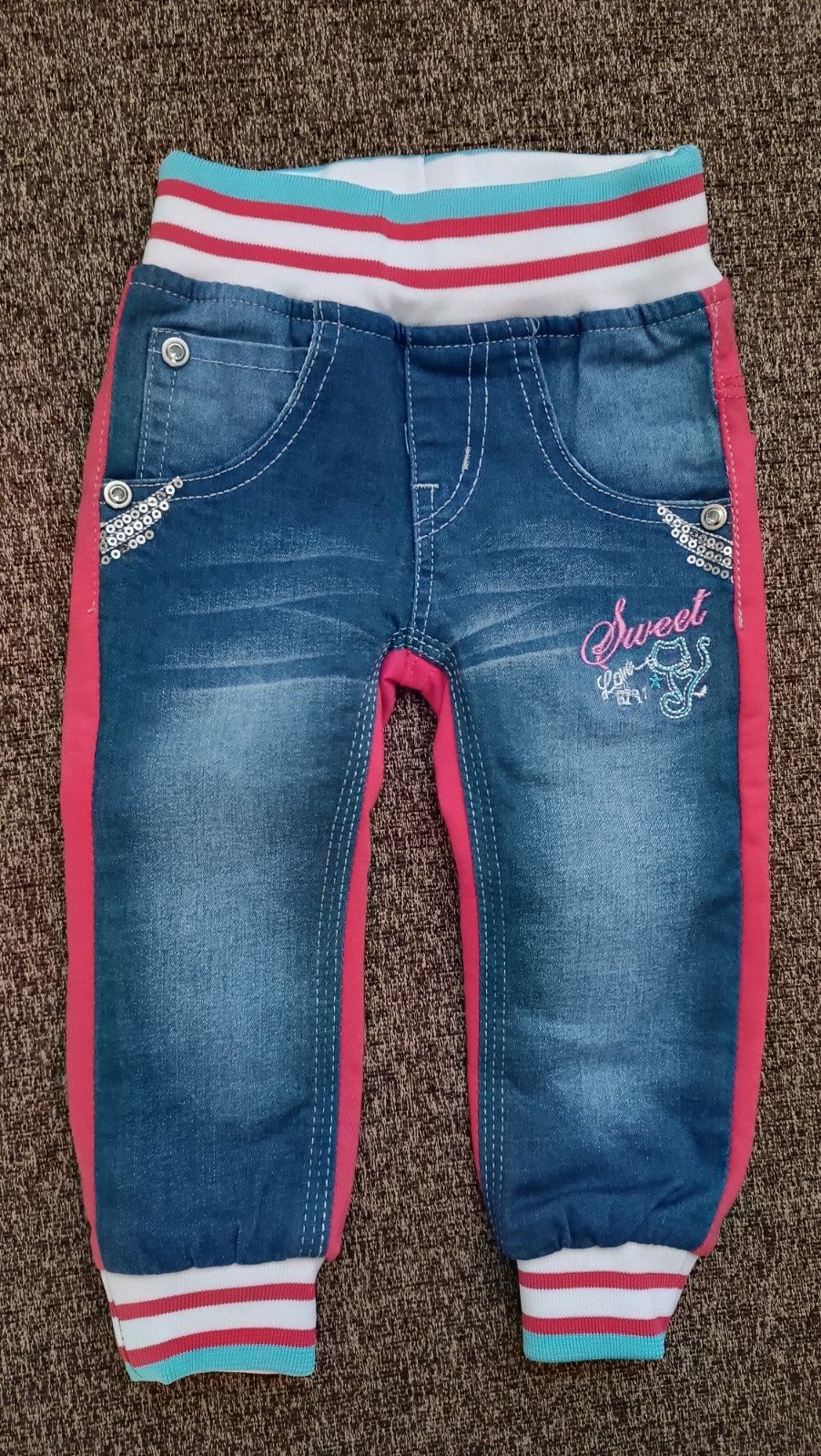 Bavlnene nohavice podsite bavlnenym futrom, makky prijemny material. Dve predne vrecka, nad pravym zdobene maslickou. Medzi nozickami nohavice rozopinatelne patentkami. Top stav.
