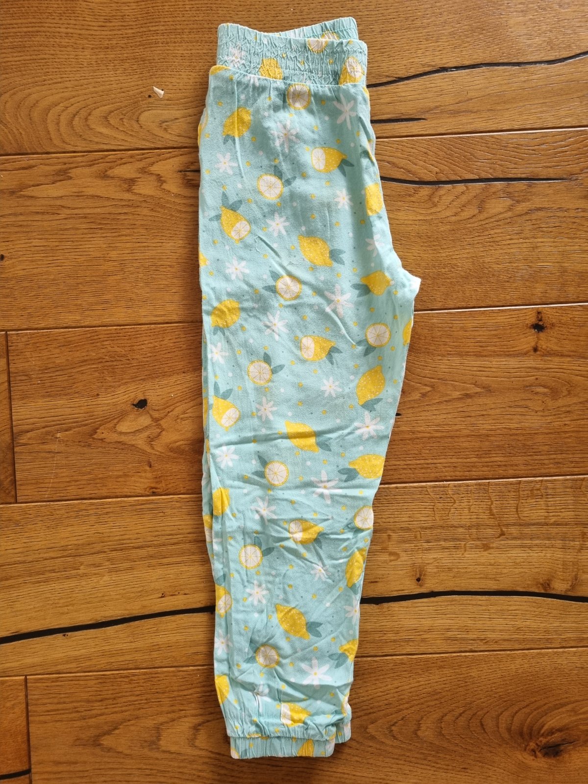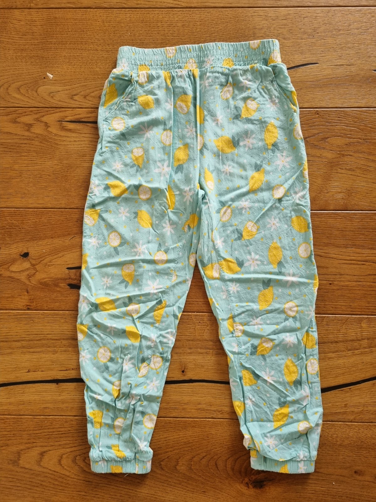 Pekný stav. Asi dvakrát oblečené. Veľkosť 128/134, redukcia v páse. Pás v kľude 2 x 31 bez stiahnutia, bočná dĺžka 69, od rozkroku dole 51.