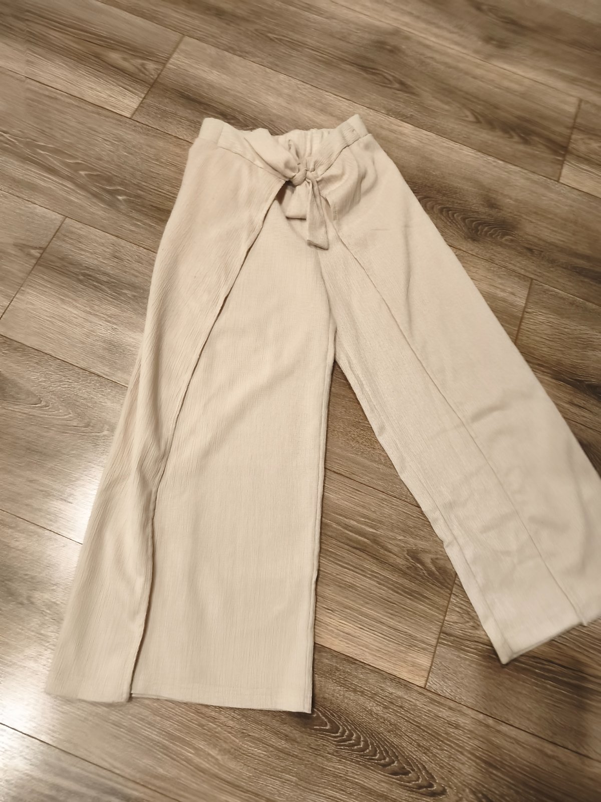 Veľmi efektné, každá nohavica je preložené, taká akoby zavinutá a pri chôdzi sa odhalia nohy ako keby mala šortky