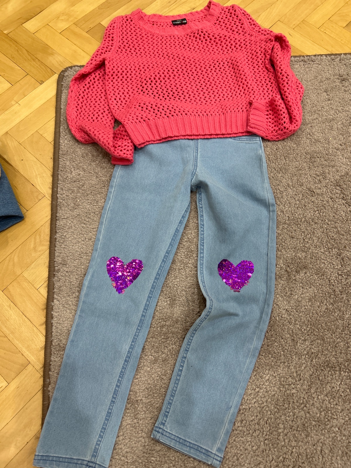Posúvam nase oblubené riflové dzegínsy. Boli dost nosené ale poskodenia nemajú len fliacik, este kludne poslúzia, pofotené a zohladené v cene. Sú elastické pekne sedia.