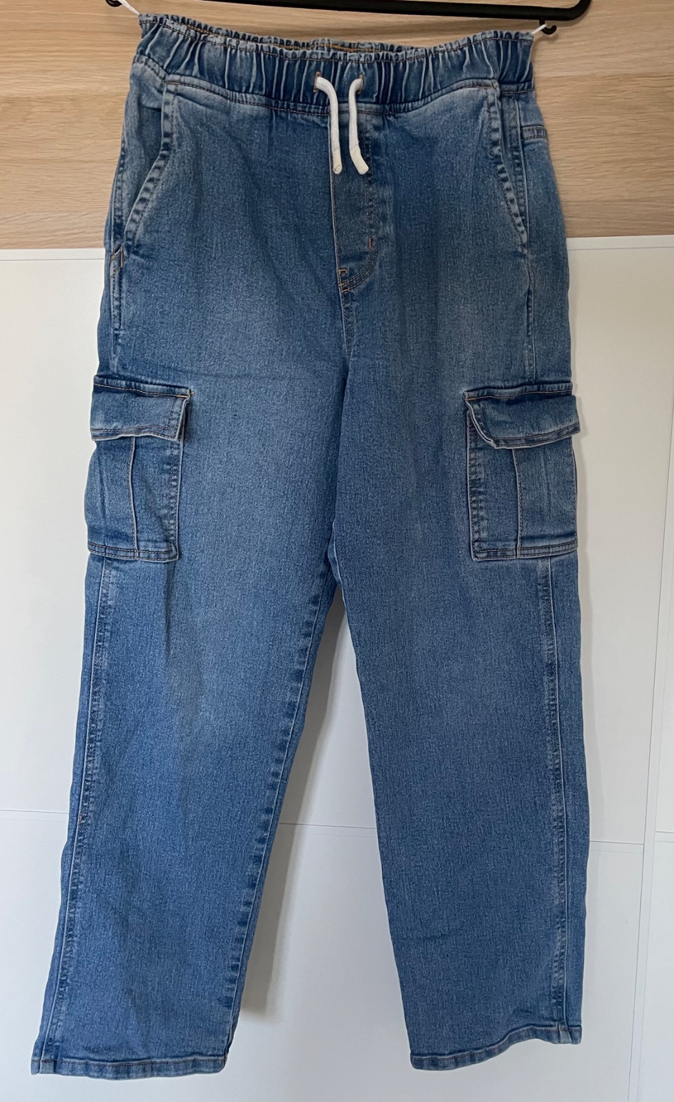 Ako nové, nastaviteľný pás, obsahuje 1% elastanu.