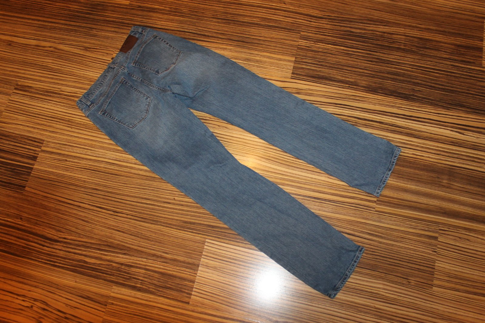 V super stave, bez poškodení, mierne elastické. Veľ. S , RO: pás 2x 38, stehno 2x 27 cm, boky cca 2x47 cm, celk. dl. 102/78 vn. dl., predný sed 25/35 zadný sed, šírka dole 2x19 cm. Váha 463 g.