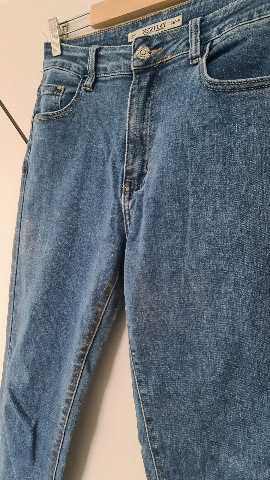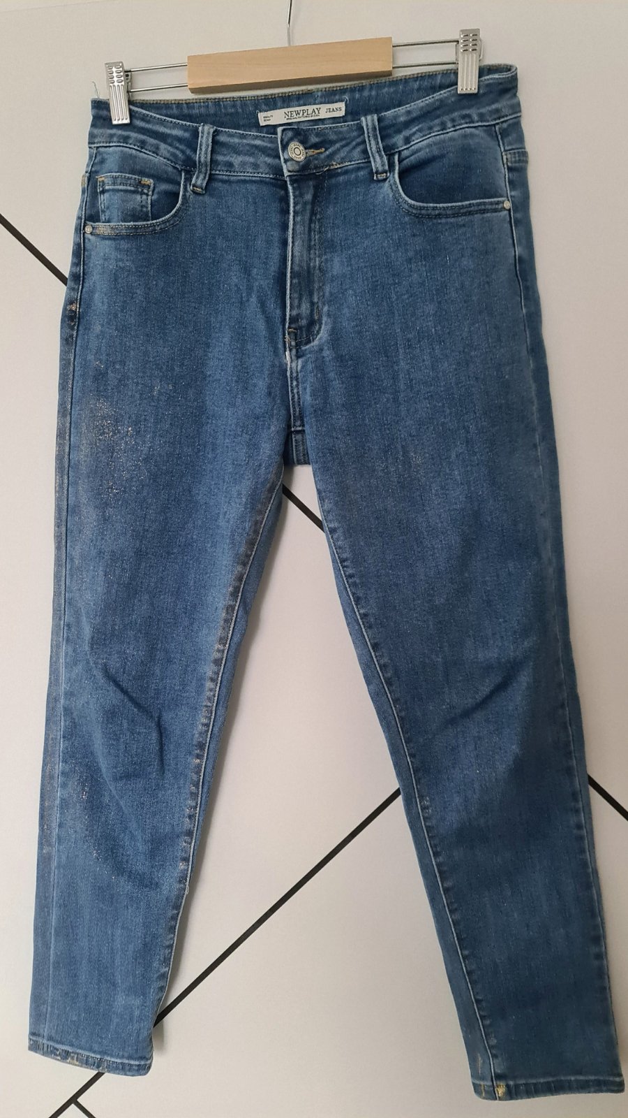 Denim rifle s jemným zlatým odleskom - trblietkami, značka New Play, veľkosť M, 1x vzaté- bez poškodenia.