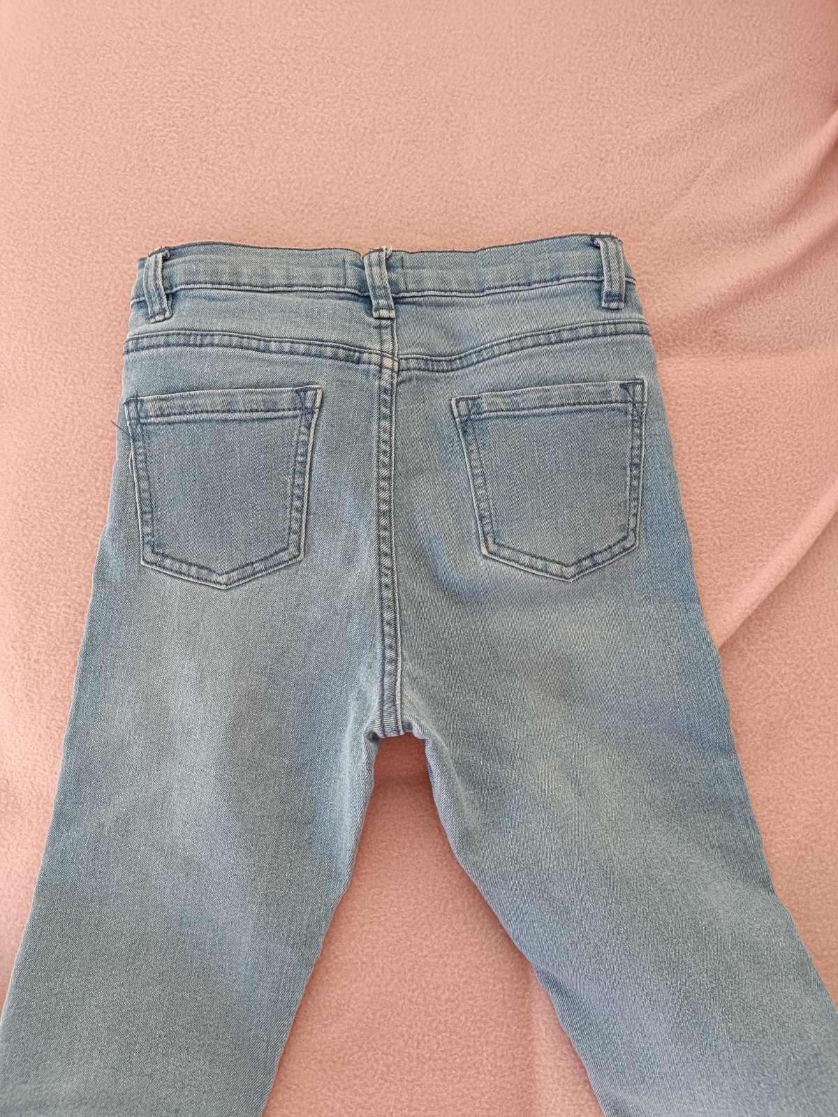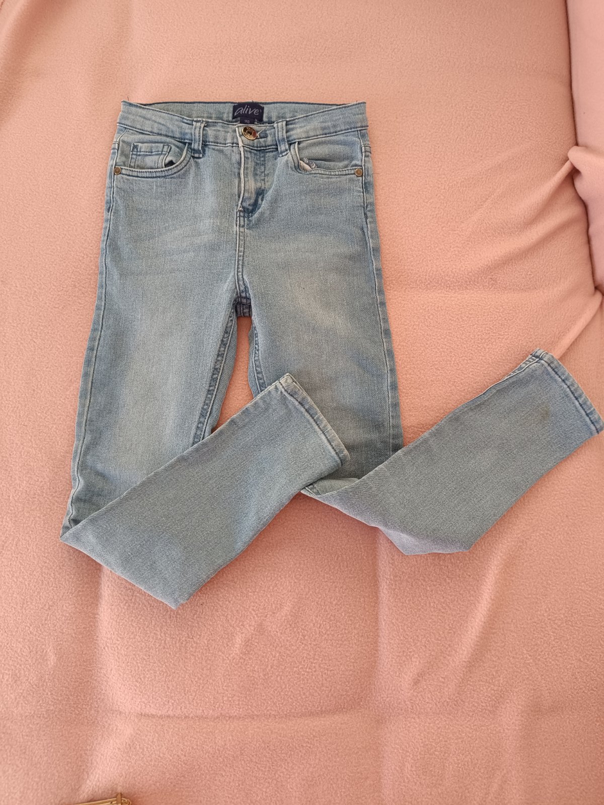 Dvoje klasické modré rifle pre dievčatko. Málo nosené, nezničené. V páse nastaviteľná guma, zn. alive, veľ. 140. Vpredu aj vzadu po dve vrecká. Jedny dĺžka: 83, pás max.34x 2 cm. Druhé: dĺžka 84 cm...