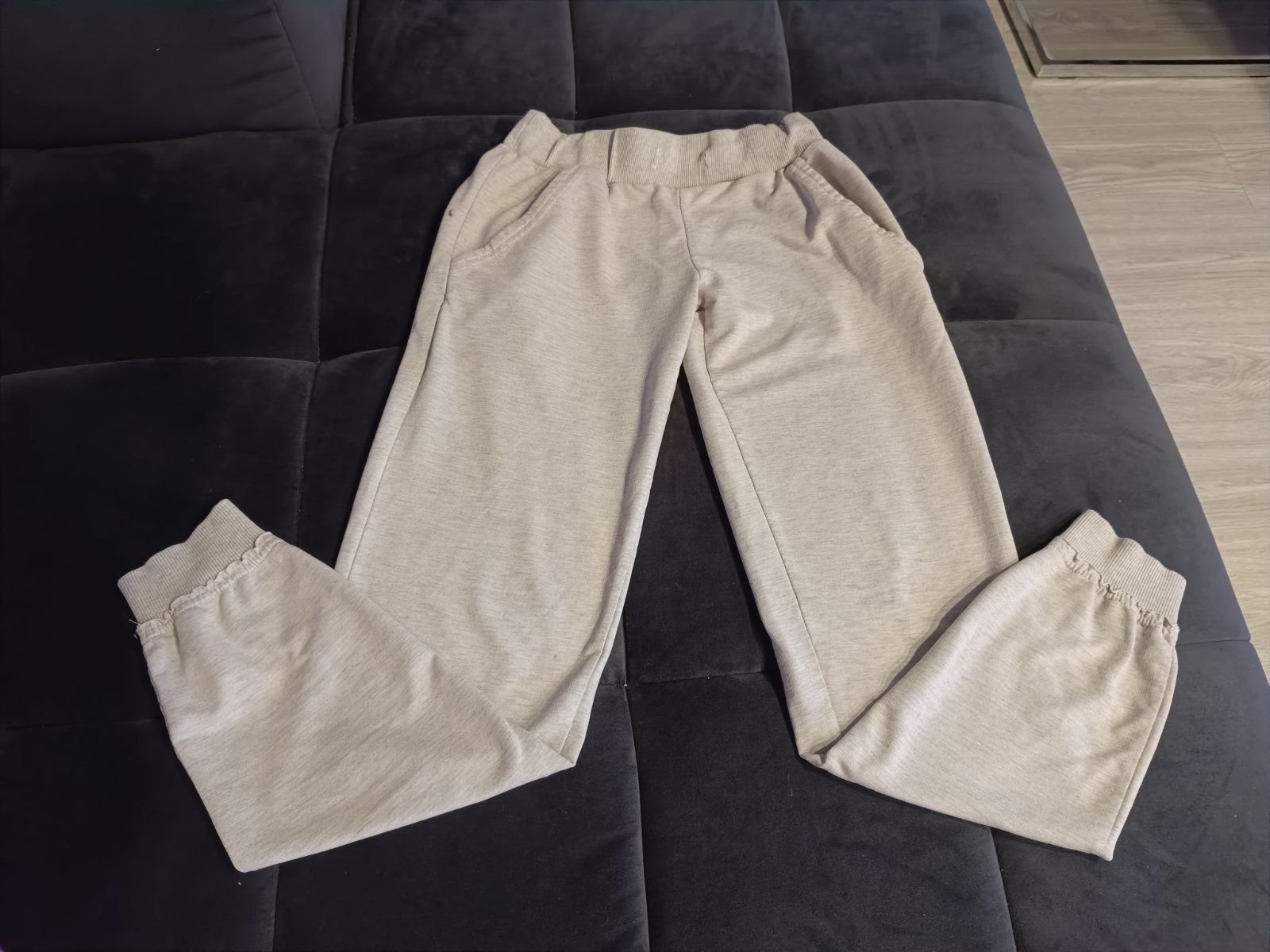 veľmi pohodlné, praktické, zaujímavý strih - predný diel akoby preložený, takže to nie sú celkom klasické tepláky, XS sedí, dĺžka 87 vrátane spodného patentu, pás 2x32 v pokoji, natiahne sa do 2x42 cm