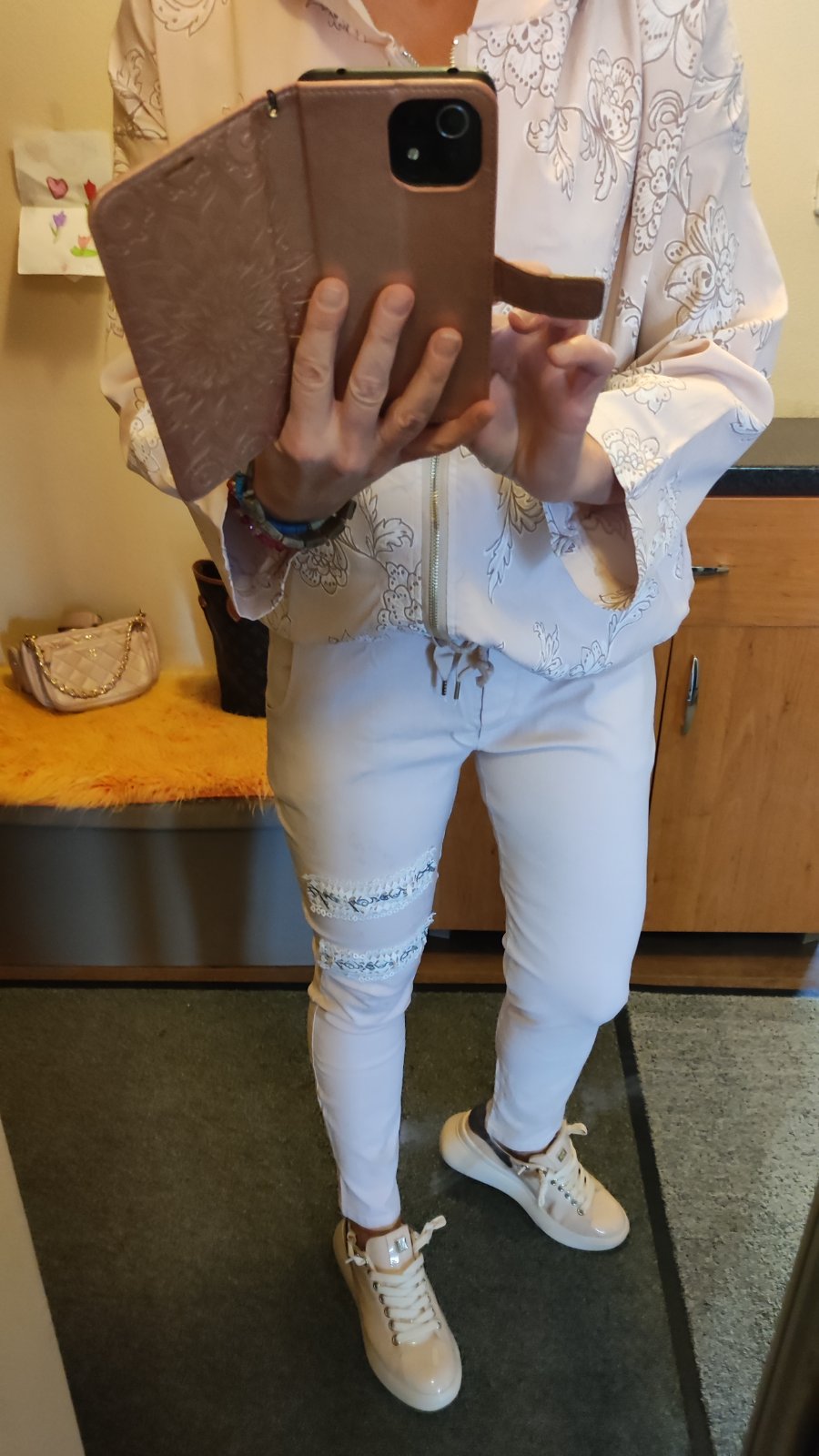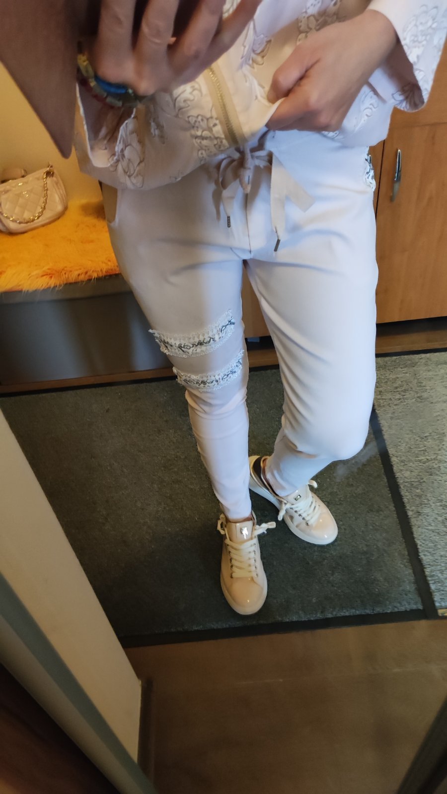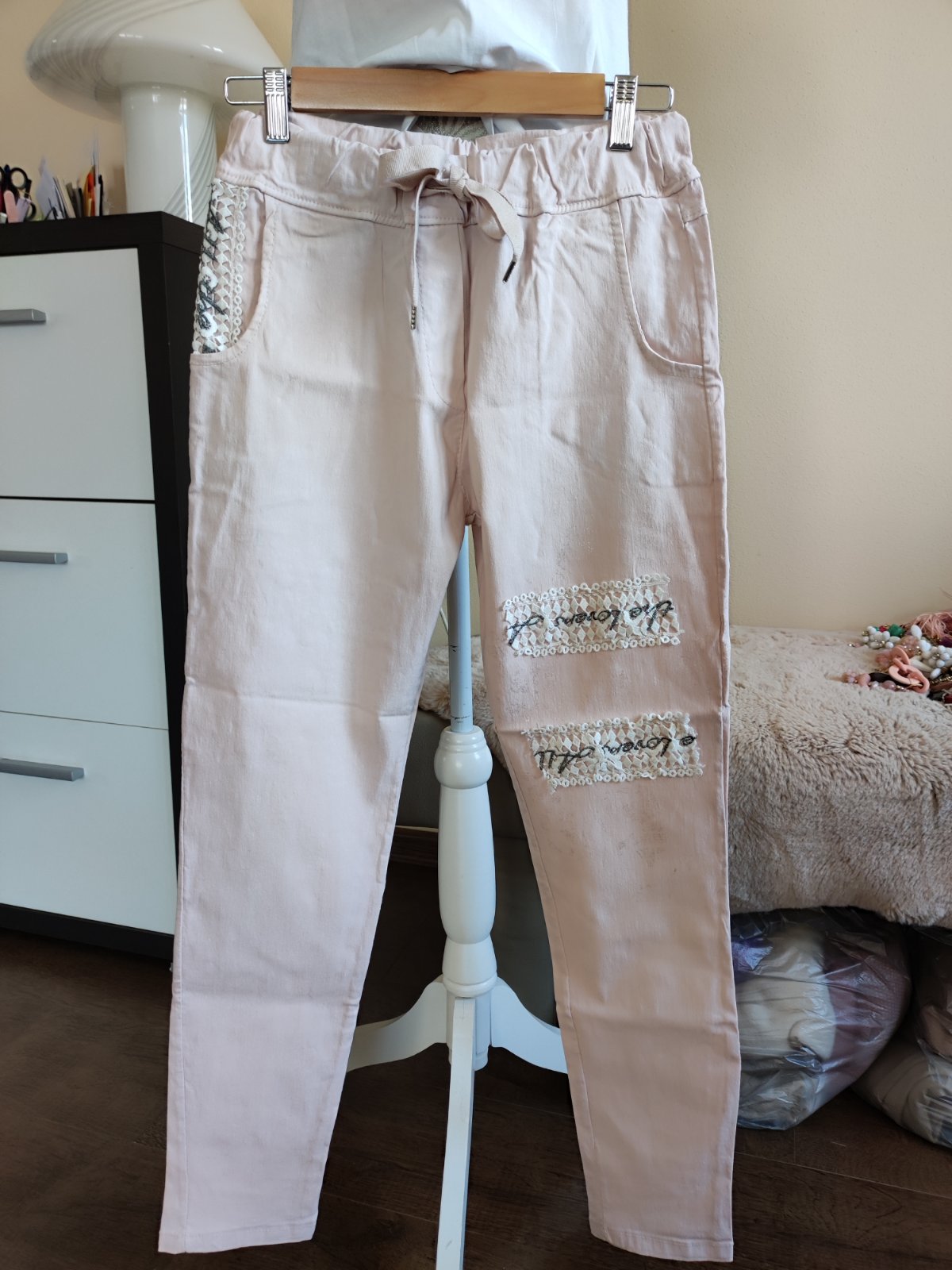 Nohavice kúpené na MK nesadla mi veľkosť Materiál bavlna a elastan Farba staroružová Veľkosť uvedená 36 su o trošku väčšie podľa mňa. Dĺžka 101cm a pás 38cm cez boky 48cm