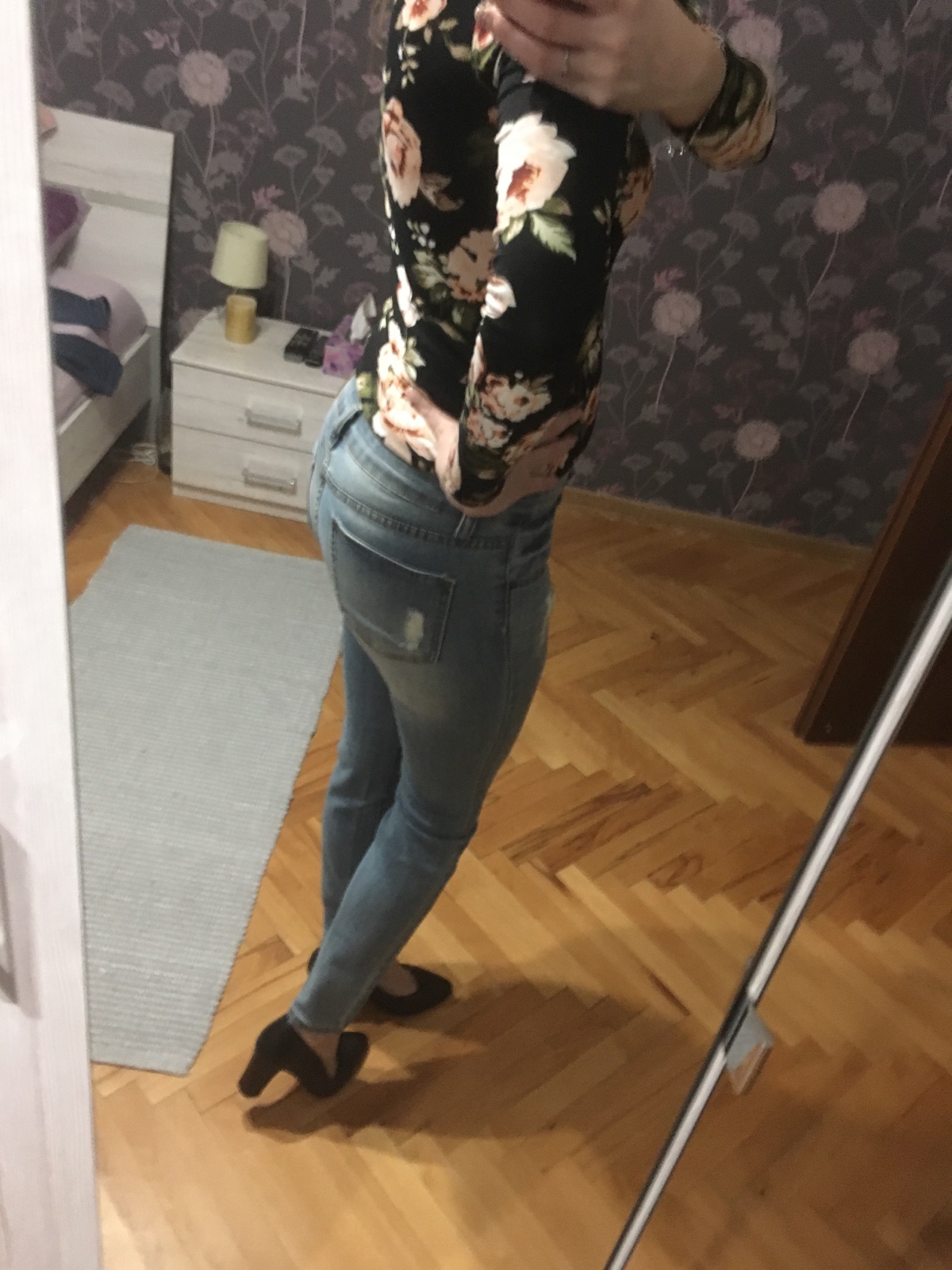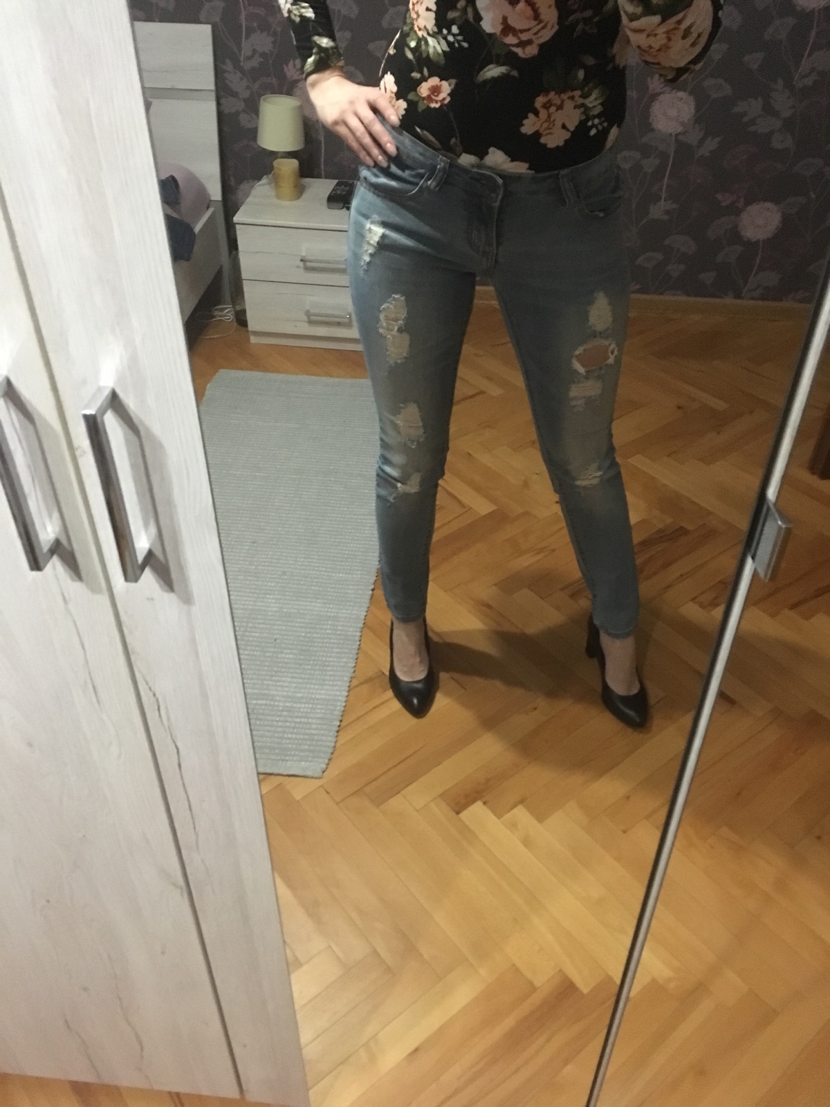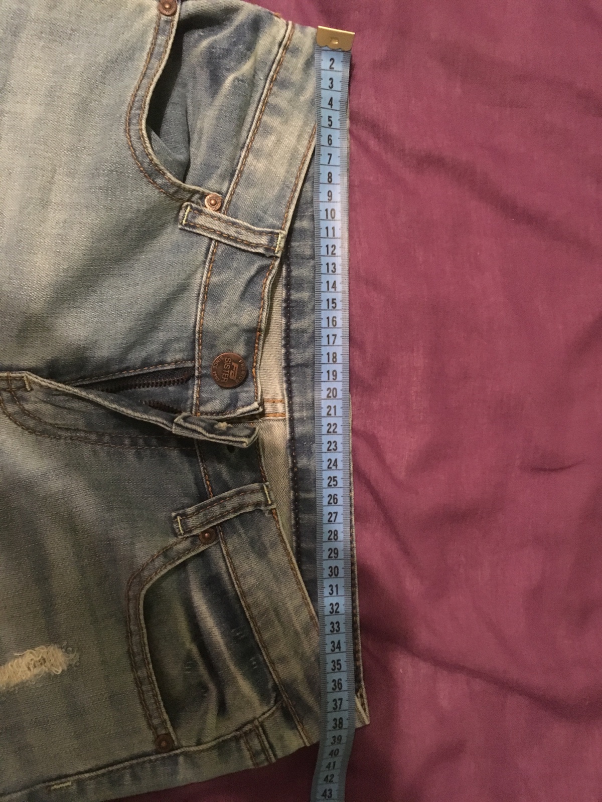 Predám krásne rifle s dierami, raz oblečené. Veľkosť 28. Kupované v New Yorkeri. Pás 38 cm, dlzka od pasa dole 96 cm.