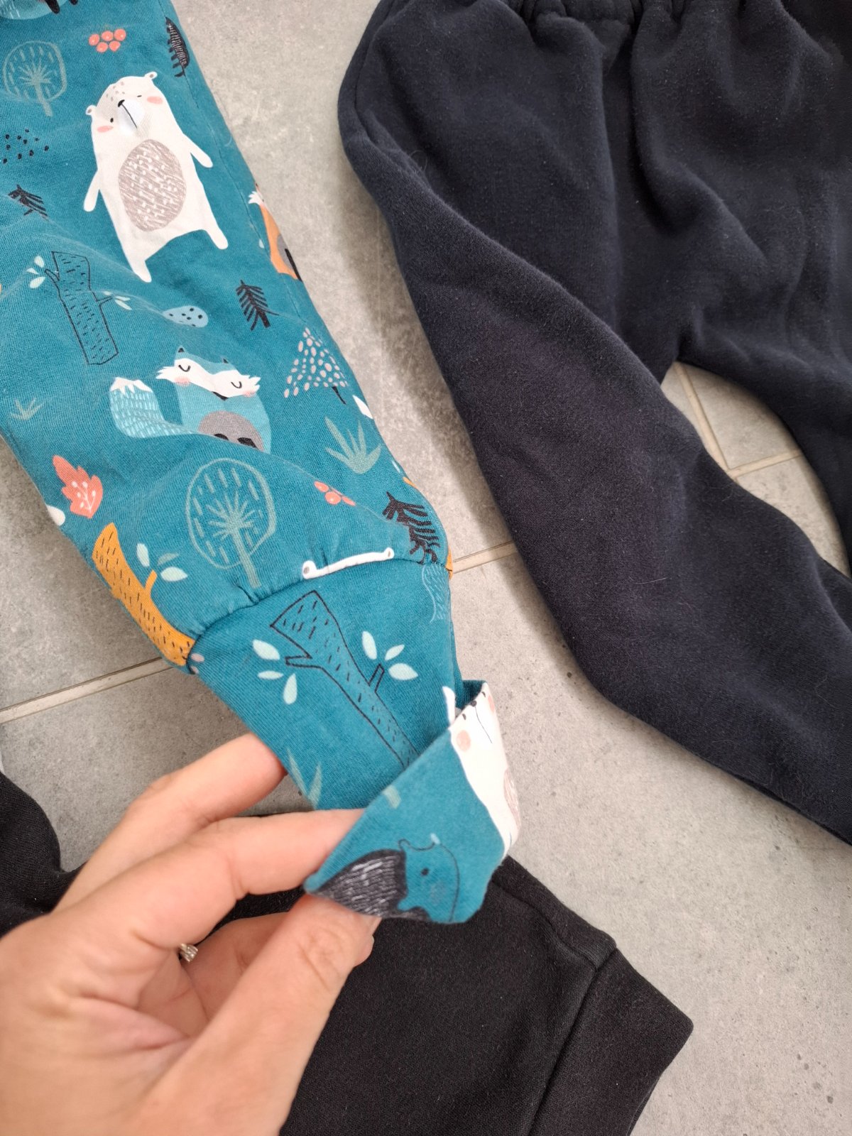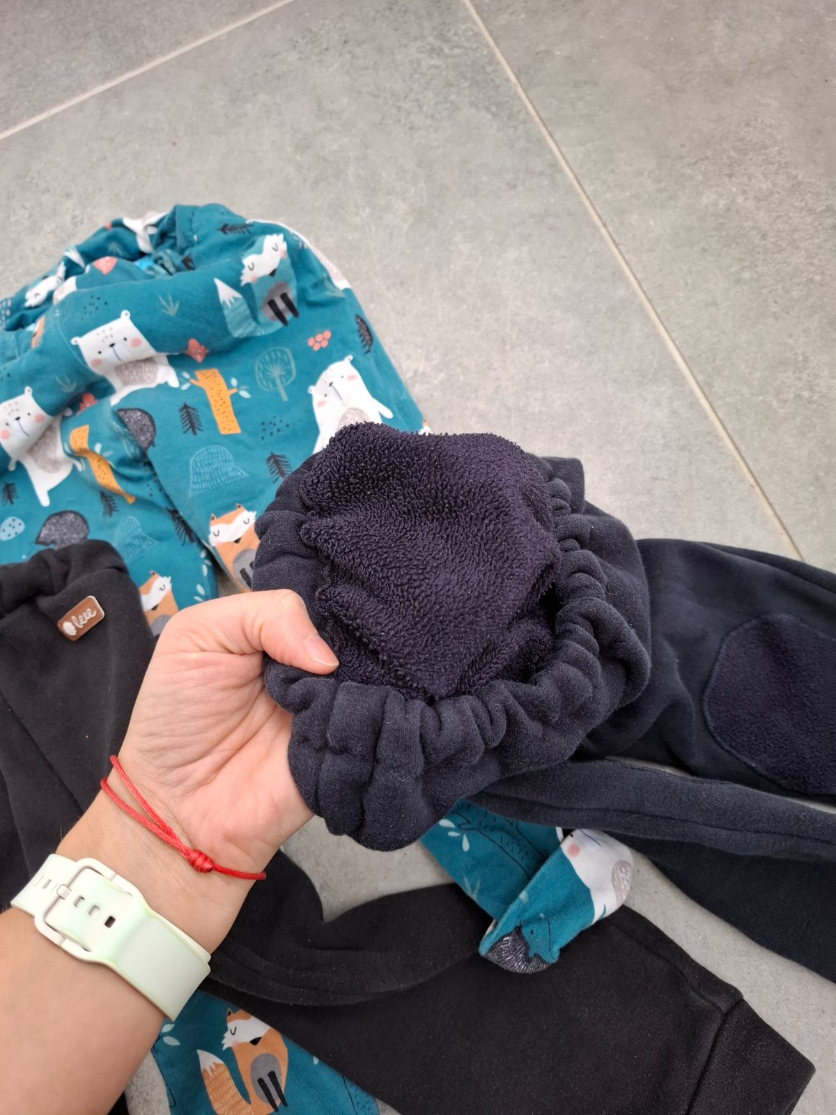 Hrubé tepláky na zimu, zateplené barančekom, handmade modré majú skvelé predĺžené patenty na prispôsobenie dĺžky, čierne bee praktických vysoký pás dobre a kryjúci chrbatik, tretie máju spevnené kolienka