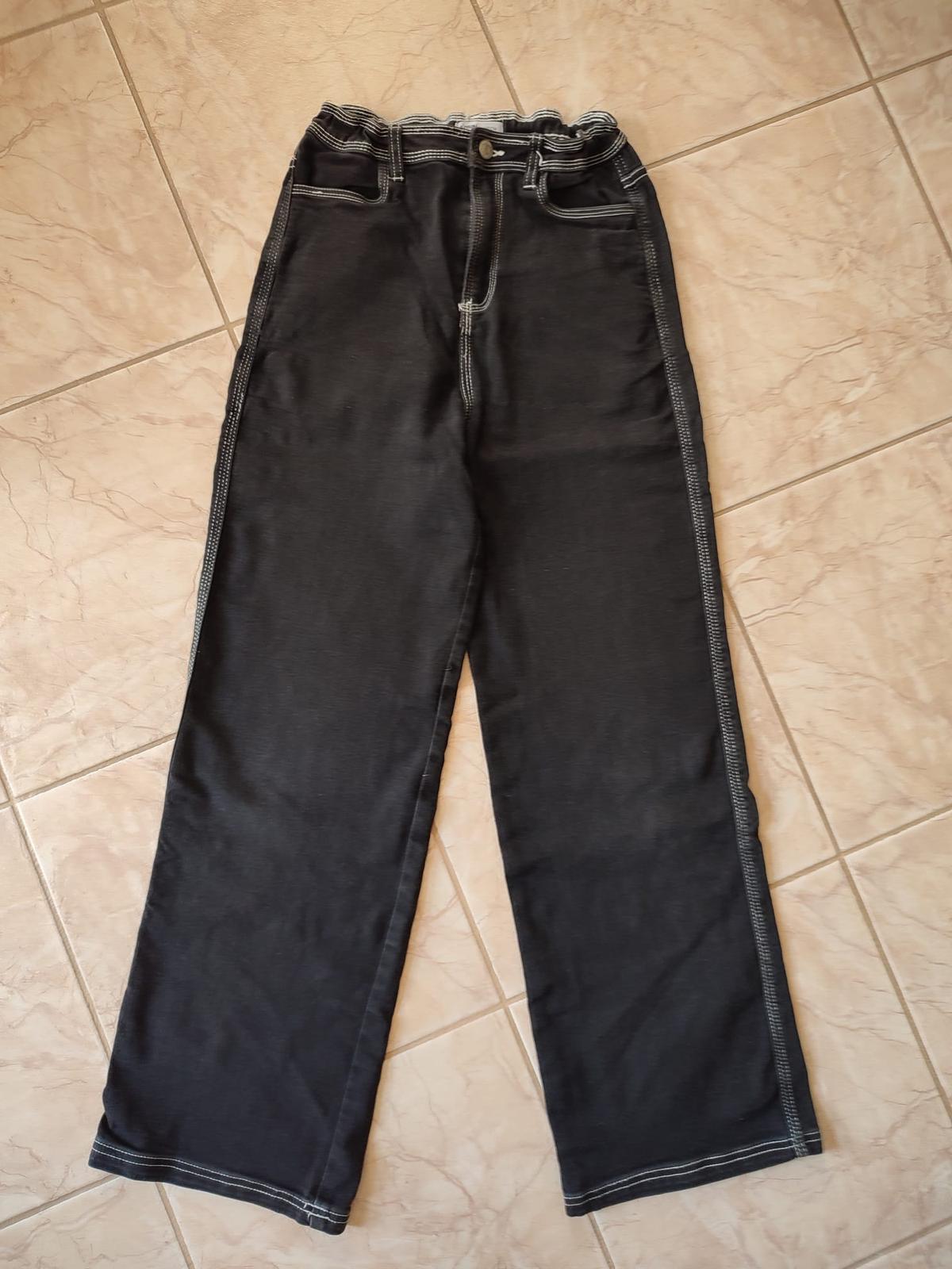 Rifle wide leg, čierne prešívané bielou niťou. V páse regulovateľná gumička. Bez poškodení.