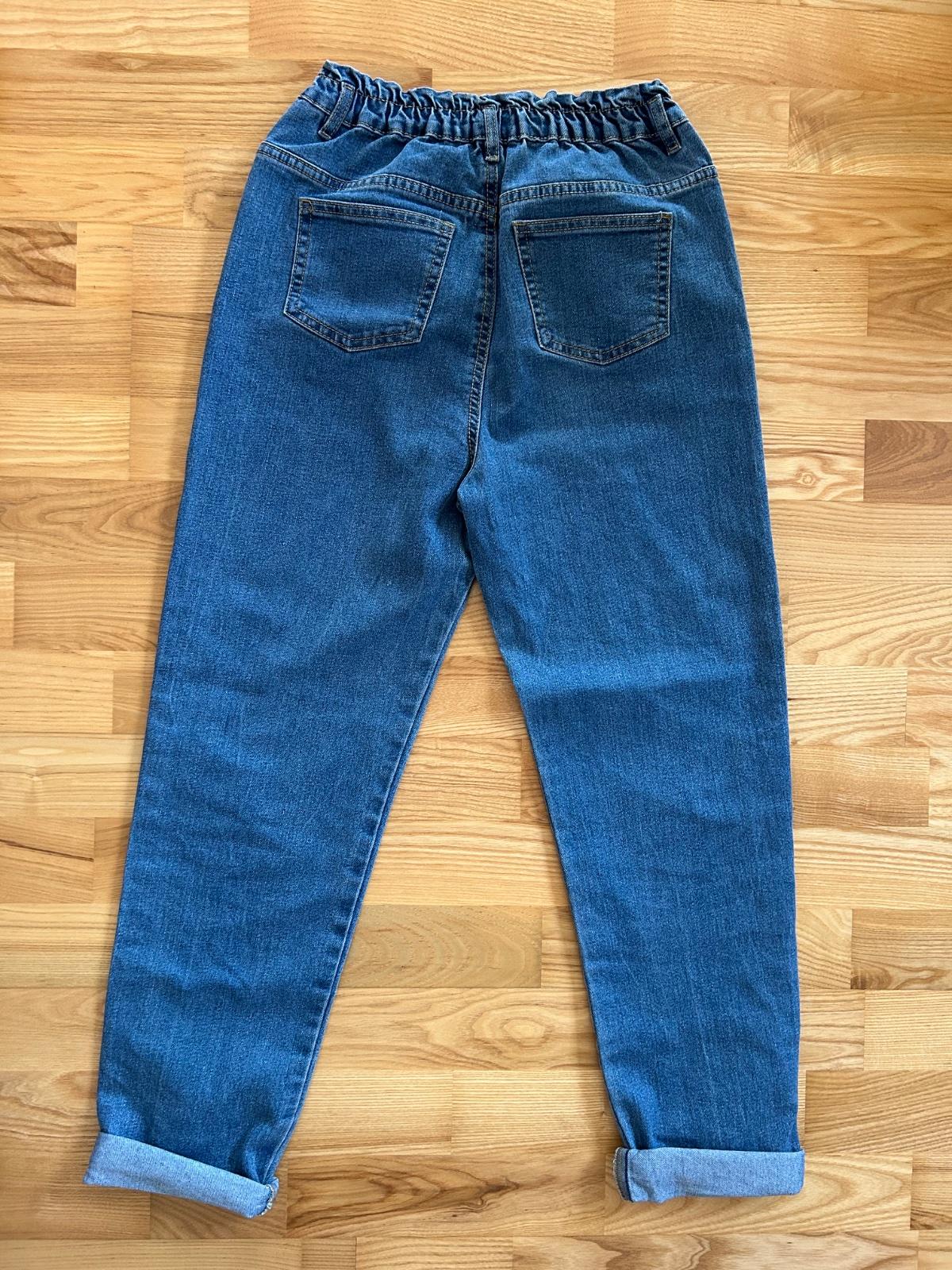 Nosené dievčenské rifle. Pás 68cm ( je tam aj gumičku na stiahnutie), boky 94cm, dľžka 88 cm.