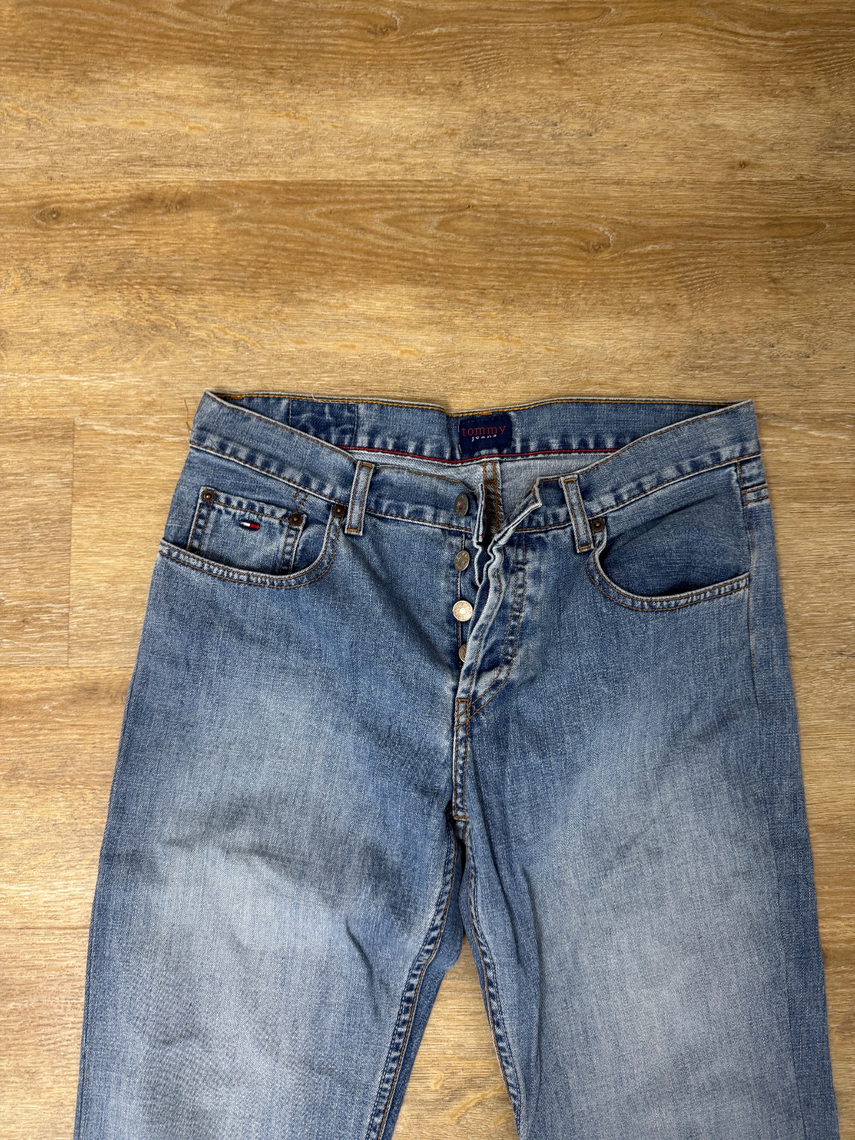 Ponúkam bledomodré rifle, podľa mňa môžu byť nosené aj ako unisex. Sú značky Tommy Hilfiger a veľkosť je uvedená W31 a dĺžka L34 ale boli trochu skracované, prikladám aj rozmery. Zapínanie je na gombičky. Sú naďalej v peknom stave. Poštovné podľa taríf.