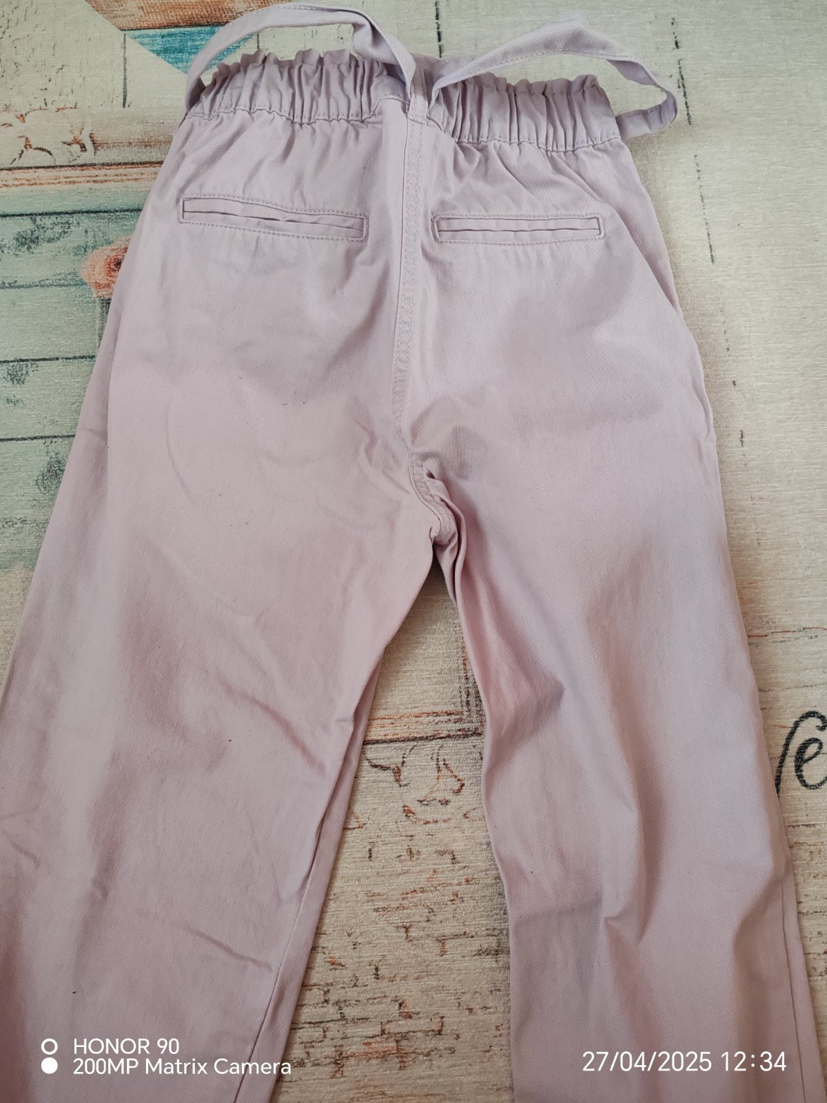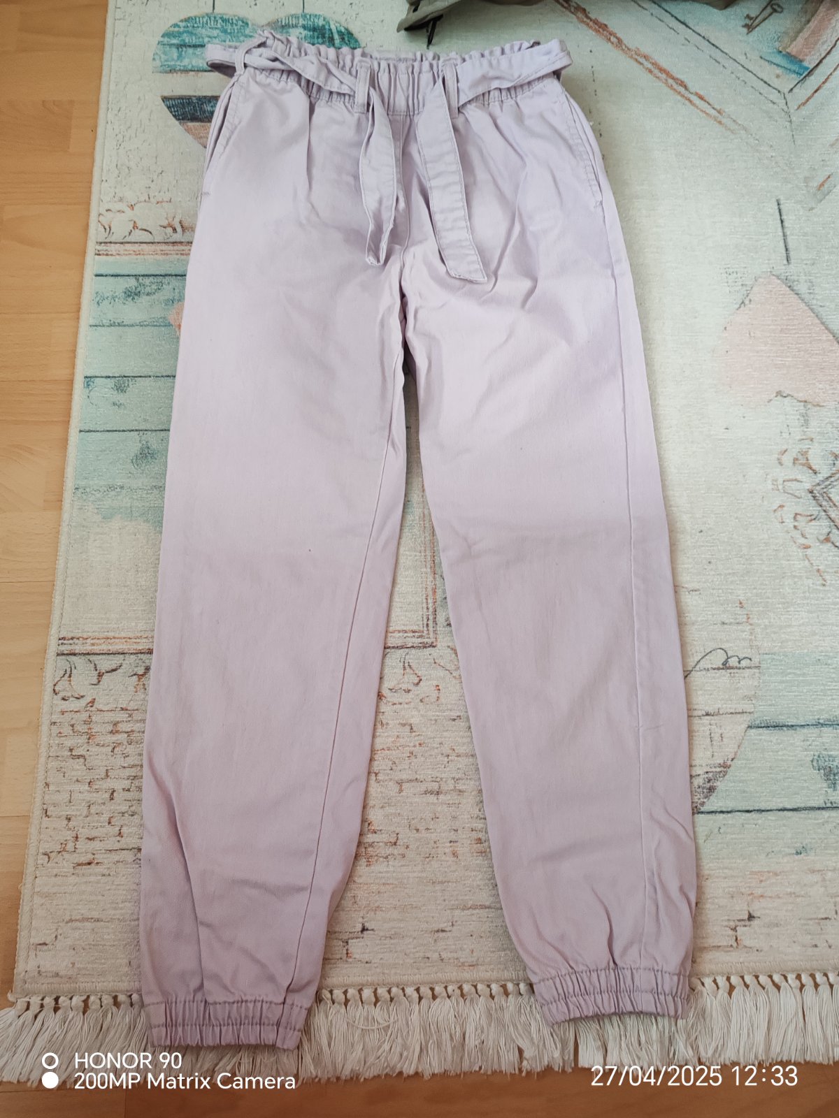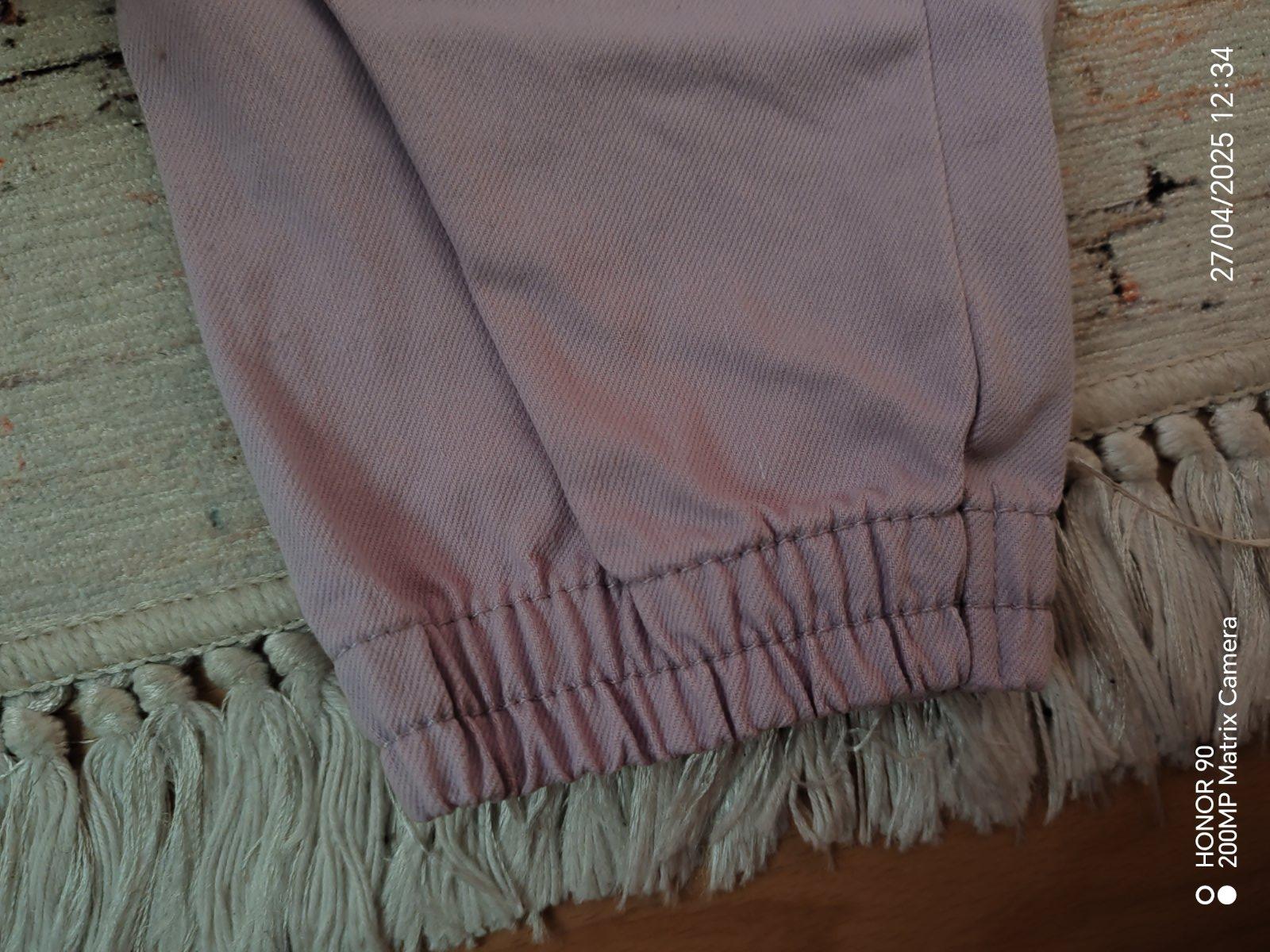 Nohavice oblečené pár krát, top stav. V páse gumička + látkový opasok, prispôsobia sa. Na spodku nohavíc patent.