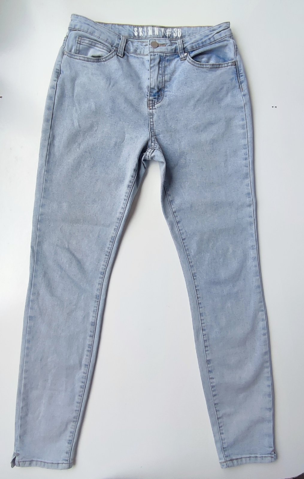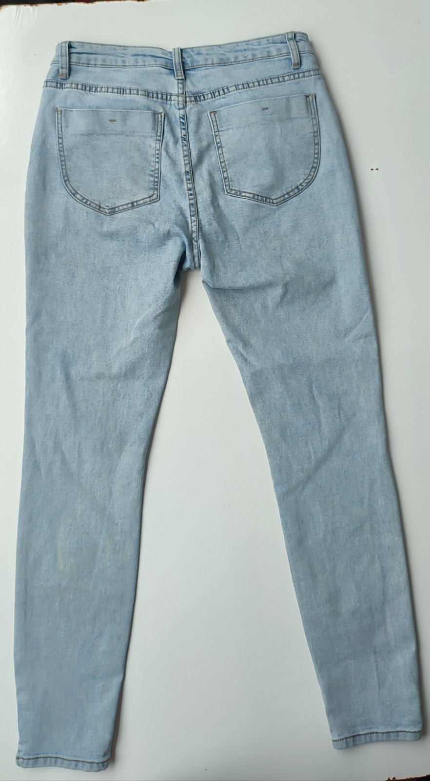 Bledomodré rifle rovného strihu. - nepoškodené, 2x oblečené. Veľkosť: je značená 40/L, ale sedí skôr na 38/M. ✂️ROZMERY📐berte ich prosím cca 1/2cm +/- 🖤 Pás - cca 38cm (odfotené) Dĺžka - cca 10...