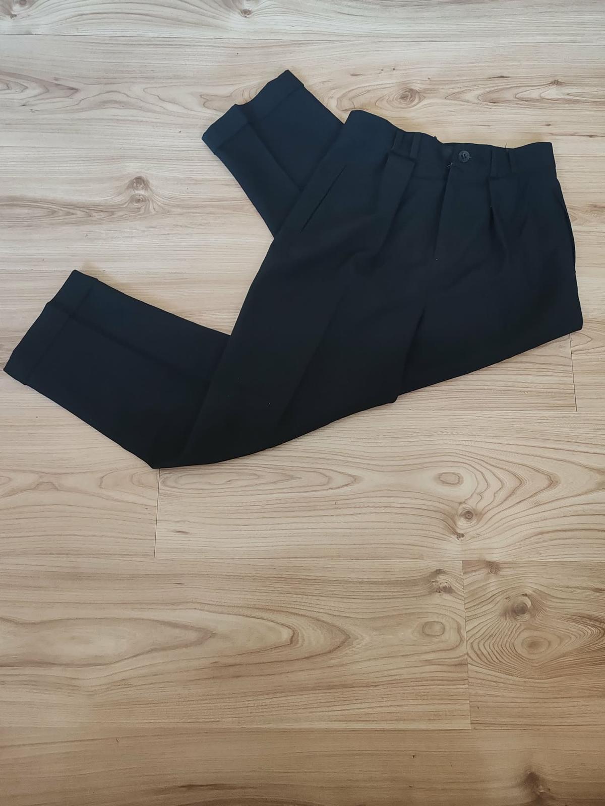 Veľkosť 36/32. Oblecene 1x asi hodinu. Pekná sýta čierna farba. Celková dĺžka 103 cm Pás 46 cm Boli čistenev v čistiarni.