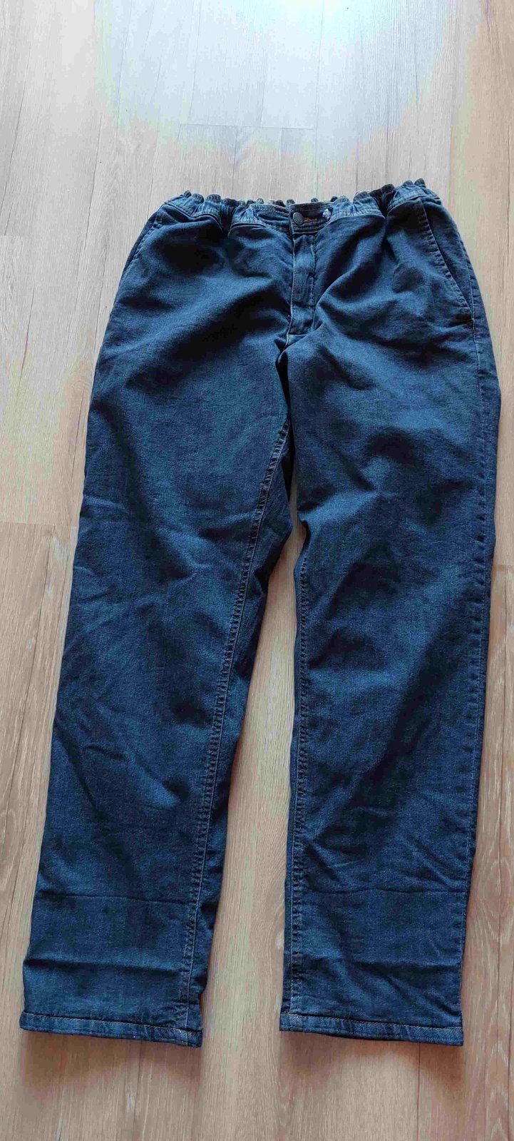 Pekné, v podstate nenosené zateplené rifle, v páse dodaná guma, XL, dl. 108cm, pás 34-54cm, boky 69cm .... cena + pošta
