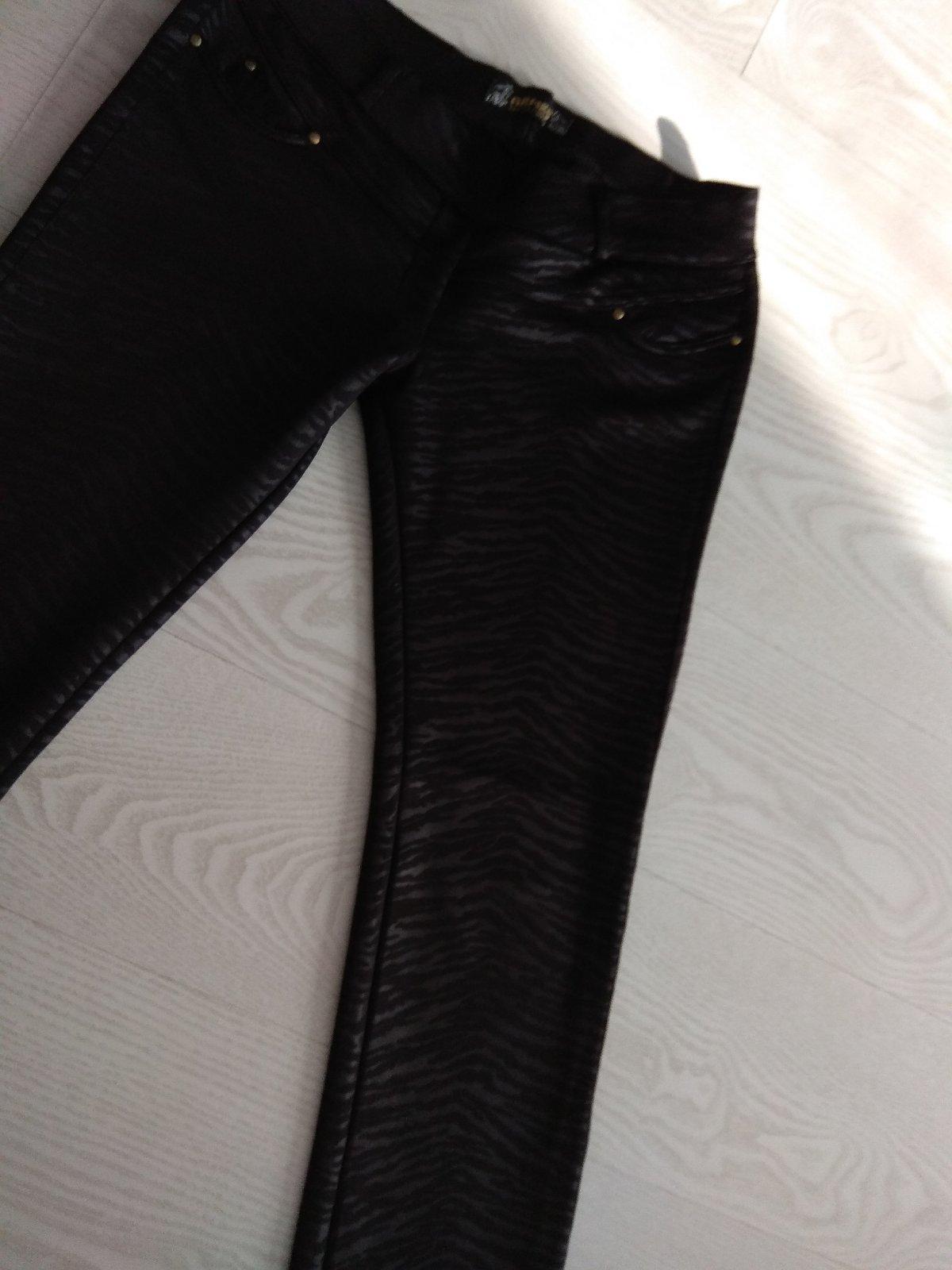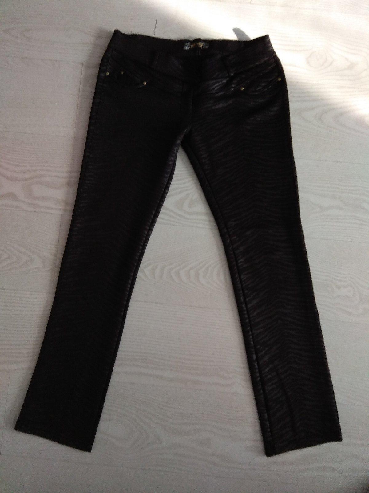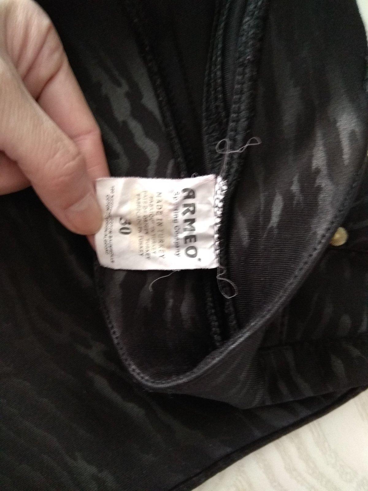 Čierne nohavice so zaujímavým vzorom s poštovným