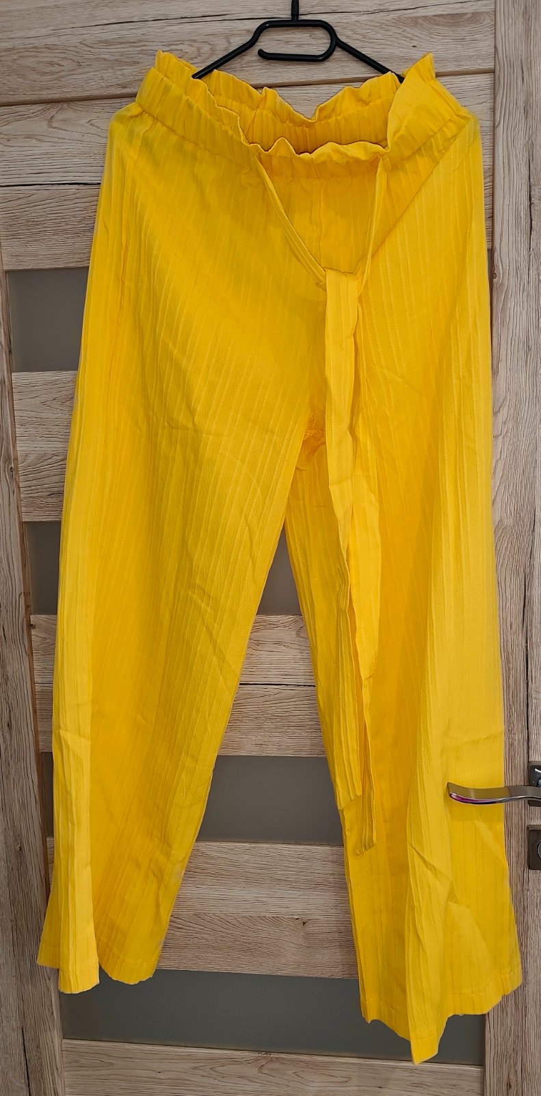 Nové široké nohavice shein. materiál je úžasný jemný.. Nohavice su vzdušné. Objednala som žiaľ väčšie nez nosim. Iba vyskúšane. Farba nádherna žltá. Na foto mám už menšiu veľkosť