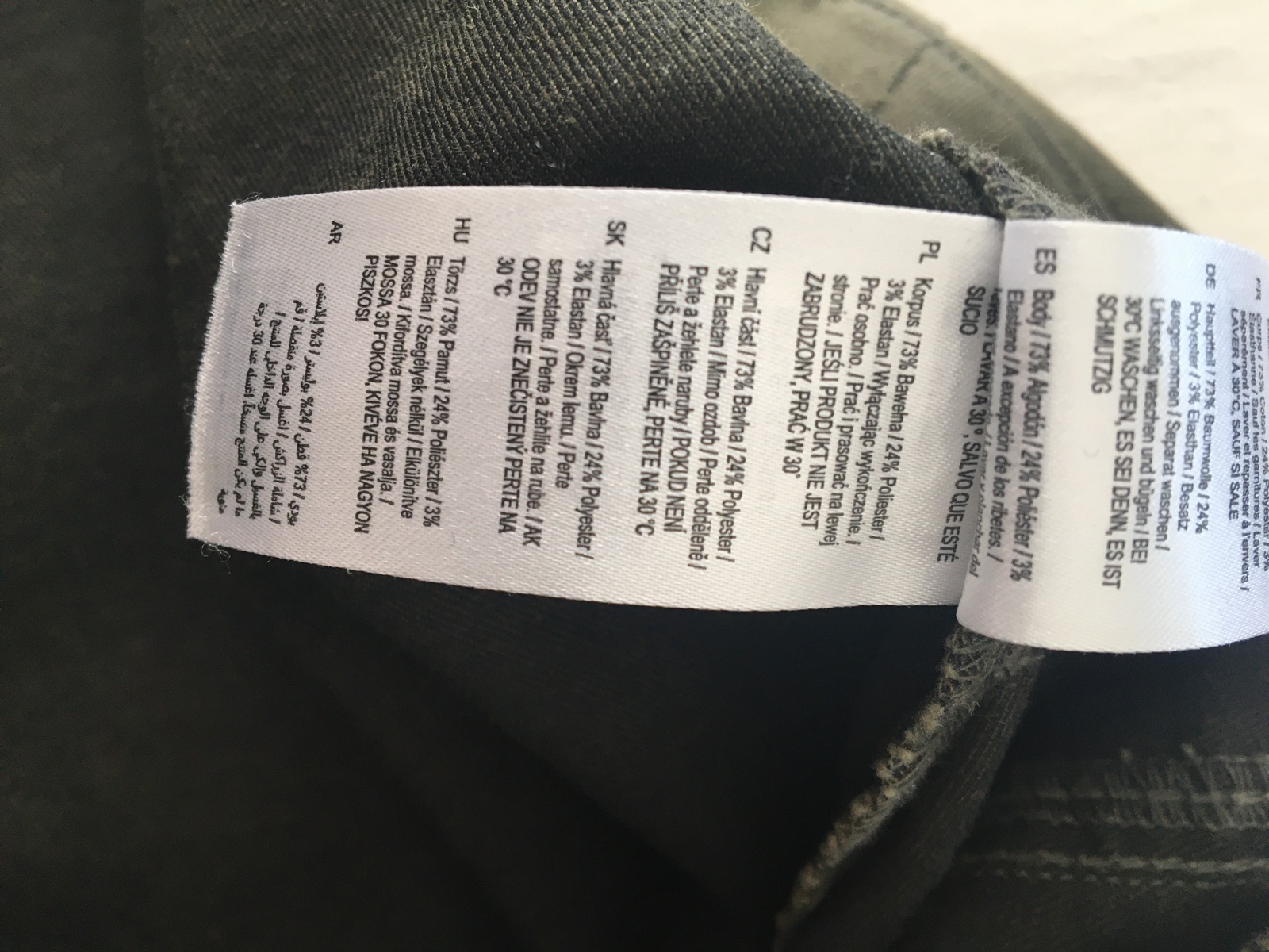Zloženie: 73% bavlna, 24% polyester, 3% elastan