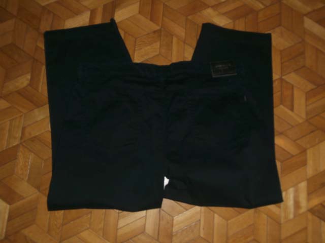 Výborný stav, zloženie: 55 % bavlna, 42 % tencel, 3% elastan, pás 56 cm, D: 105 cm, VD 72 cm, predný sed: 30 cm, zasný sed: 43 cm, stehno 37 cm