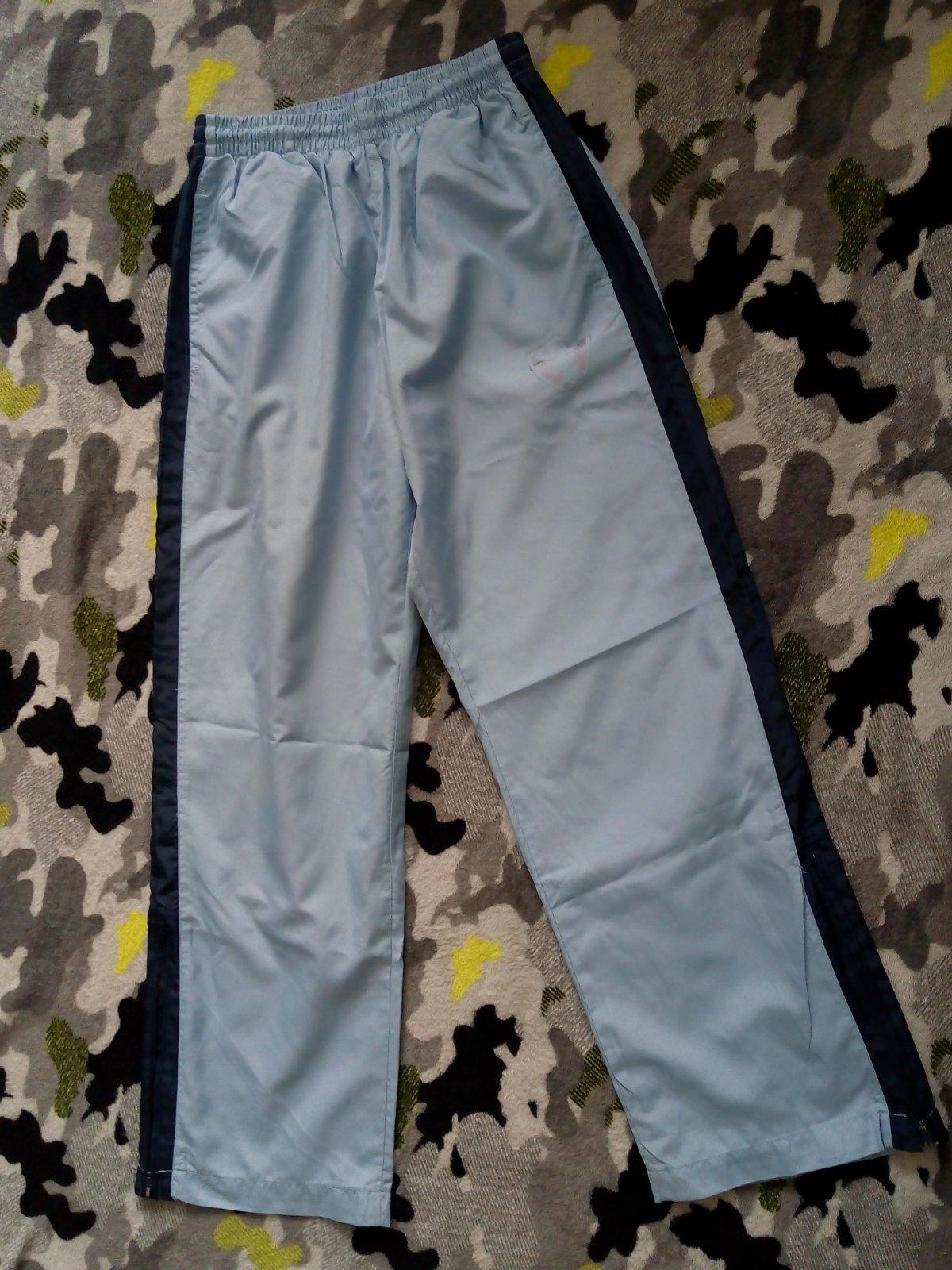 Športové šušťáky,podšité sieťkovinou.Na zadku fliačiky.Pri nosení nevidno.Darujem k nákupu.Dĺ.84cm,rozkrok 61cm,guma v pase sa natiahne na max. 36cm x2
