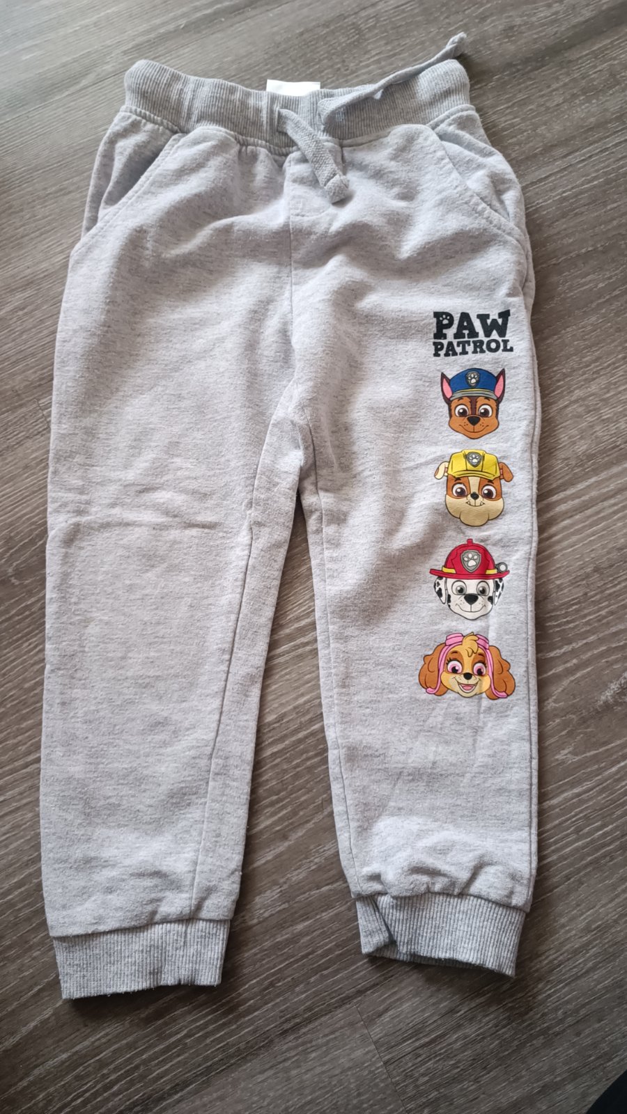 Chlapčenské tepláky s motívom Labkovej patroly v dobrom nosenom stave - vhodné skôr na domáce "donosenie" (bez dierok a fliačikov; jemné žmolky; obrázok a nápis na teplákoch sú viditeľne spraté (de...