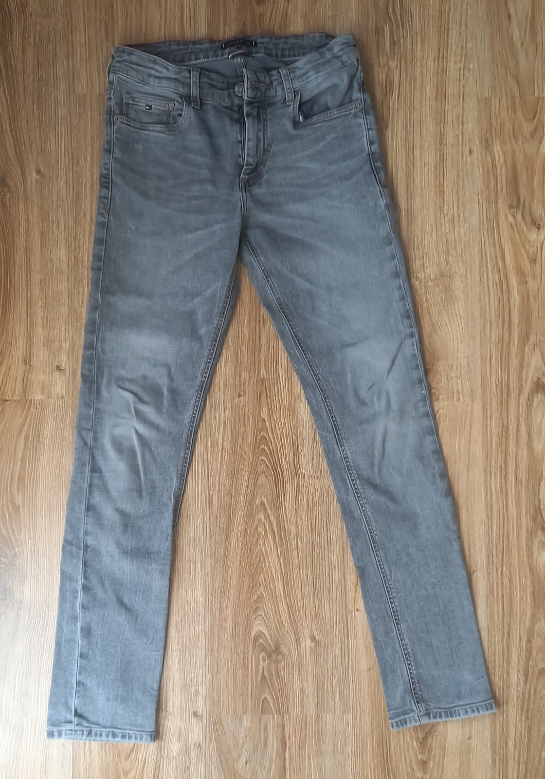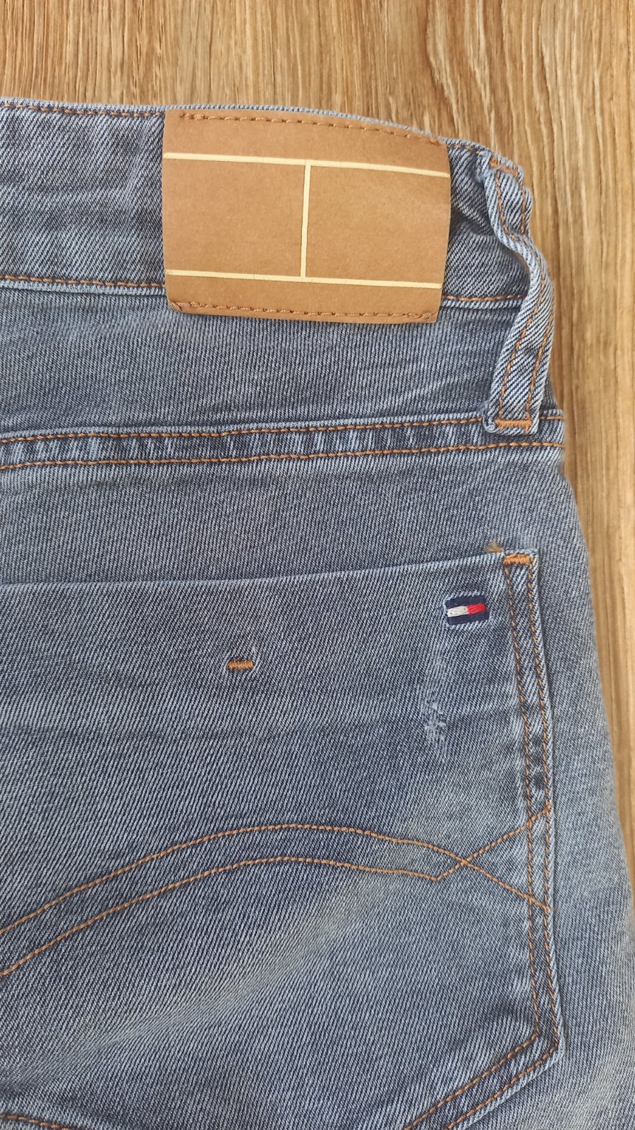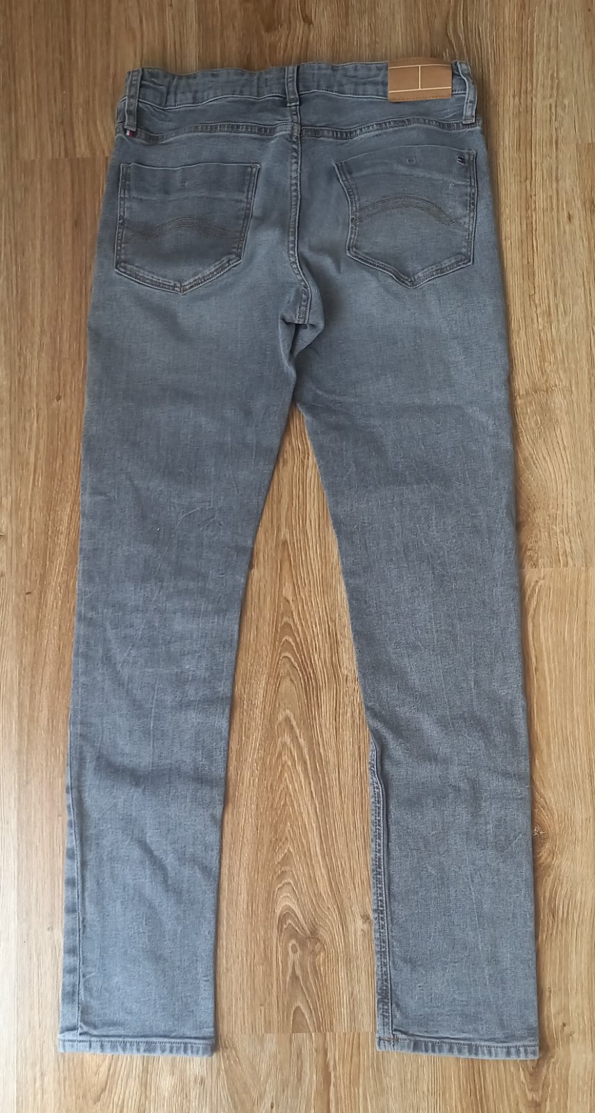 Krásne chlapčenské rifle Tommy Hilfiger príjemnej šedej farby. Boli nosené na striedačku s inými, sú stále krásne a bez závad. Na troch miestach sú ako keby vyšúchané (viď foto), ale tak boli originál kúpené. Pás sa dá doregulovať (viď foto).