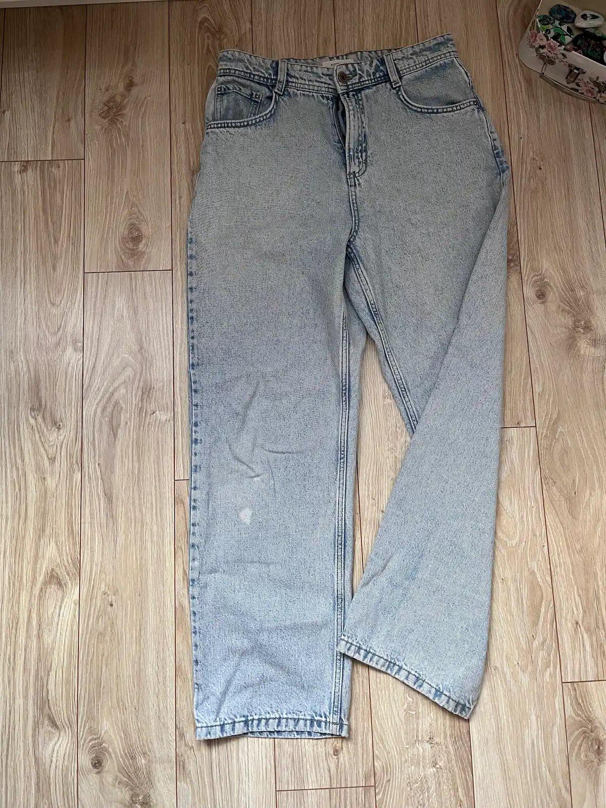 Nosené, v dobrom stave. Gombík bol menený za klasický. Vzadu nad kapsou od niečoho zafarbené, snažila som sa odfotiť. Musíte sa ale dobre zahľadieť, aby ste si to všimli. Cena prispôsobená stavu.Ve...