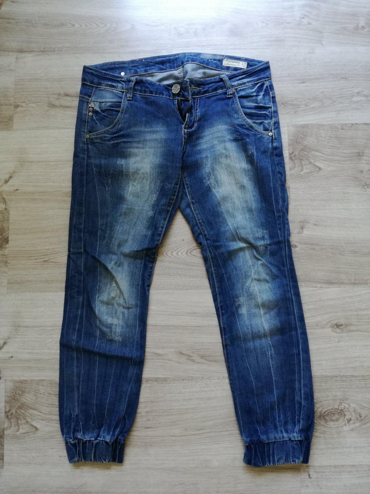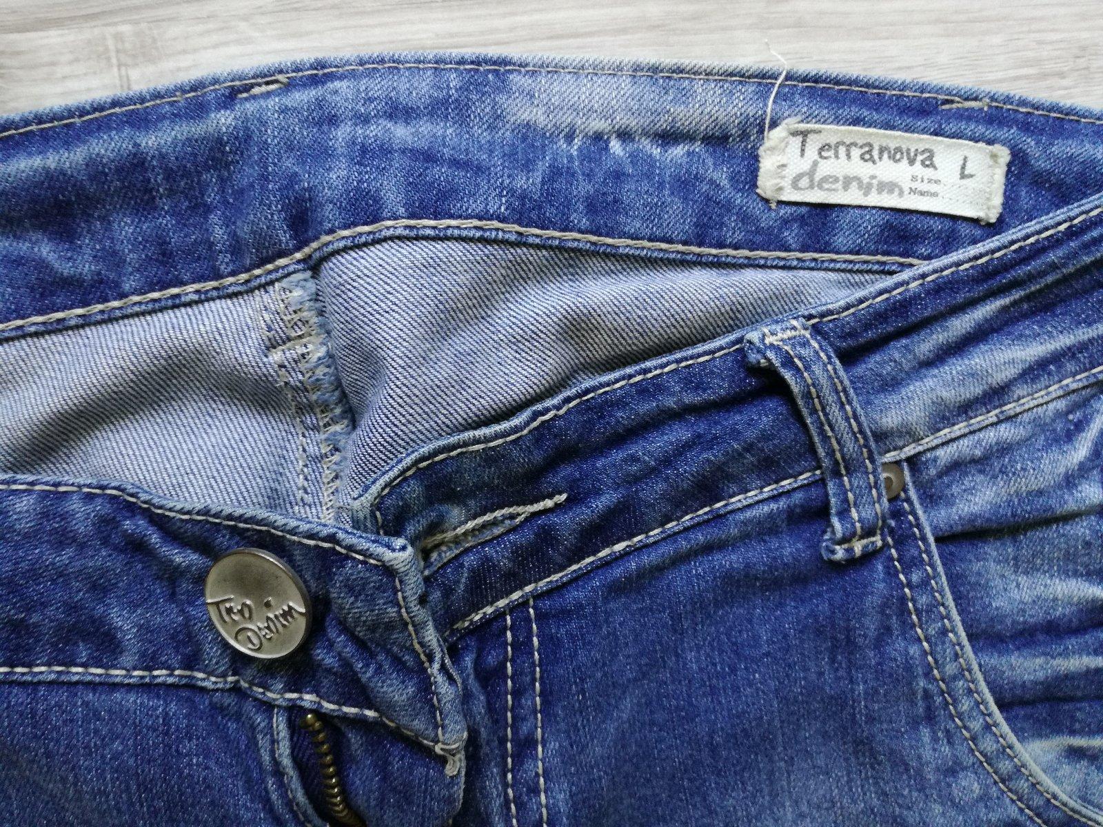 Nosené málo, ale žiaľ sa ošúchala farba v rozkroku, ale celkový stav je fakt veľmi pekný, takže komu to nevadí, ešte dobre poslúžia. Veľkosť L, rozmery máte na fotkách. Minimálna hodnota objednávk...