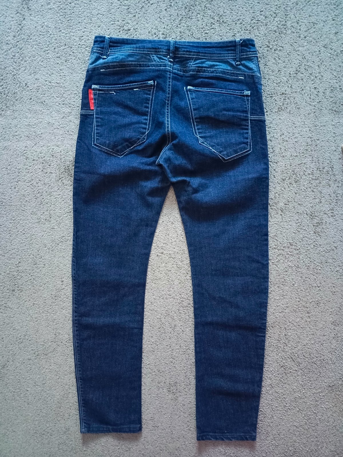 Rovný slim strih, ako nové, super sedia.