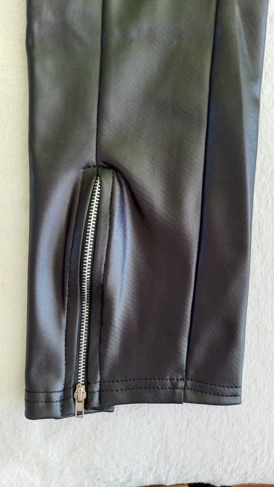 Nové koženkove nohavice/legíny so zipsami, bez vysačky. Nesadla mi veľkosť, veľkosť XL/XXL. Celková dĺžka 99 cm, šírka v páse 38x2 m (merané v kľude), boky 50x2cm (merané v kľude). Veľmi príjemný materiál, pekne sa prispôsobia postave.