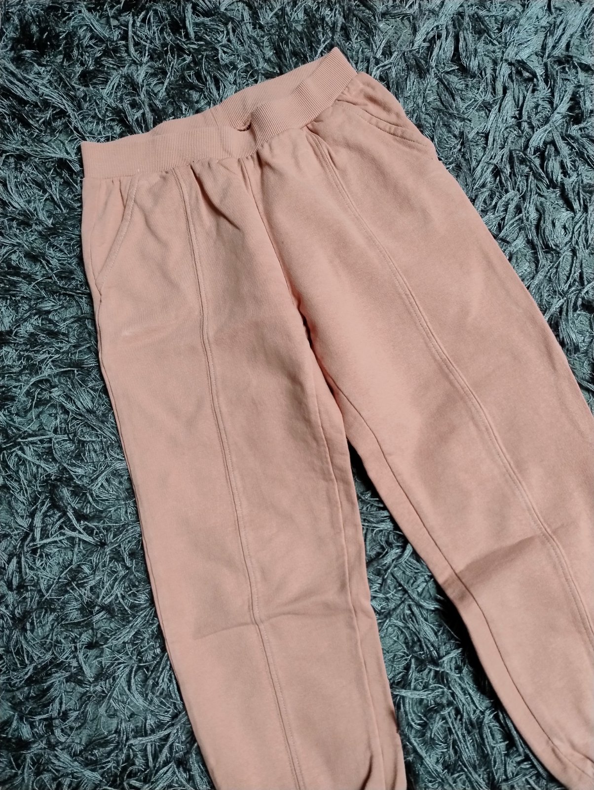 Veľmi pekný stav, krásne kvalitné, párkrát oblečené, trblietavý pás a okraj vreciek, bez žmolkov, bez fľakov, s vreckami, pás na gumu a funkčnú šnúrku, sýta farba, nezateplené, 📌bočná dĺžka 76cm,...