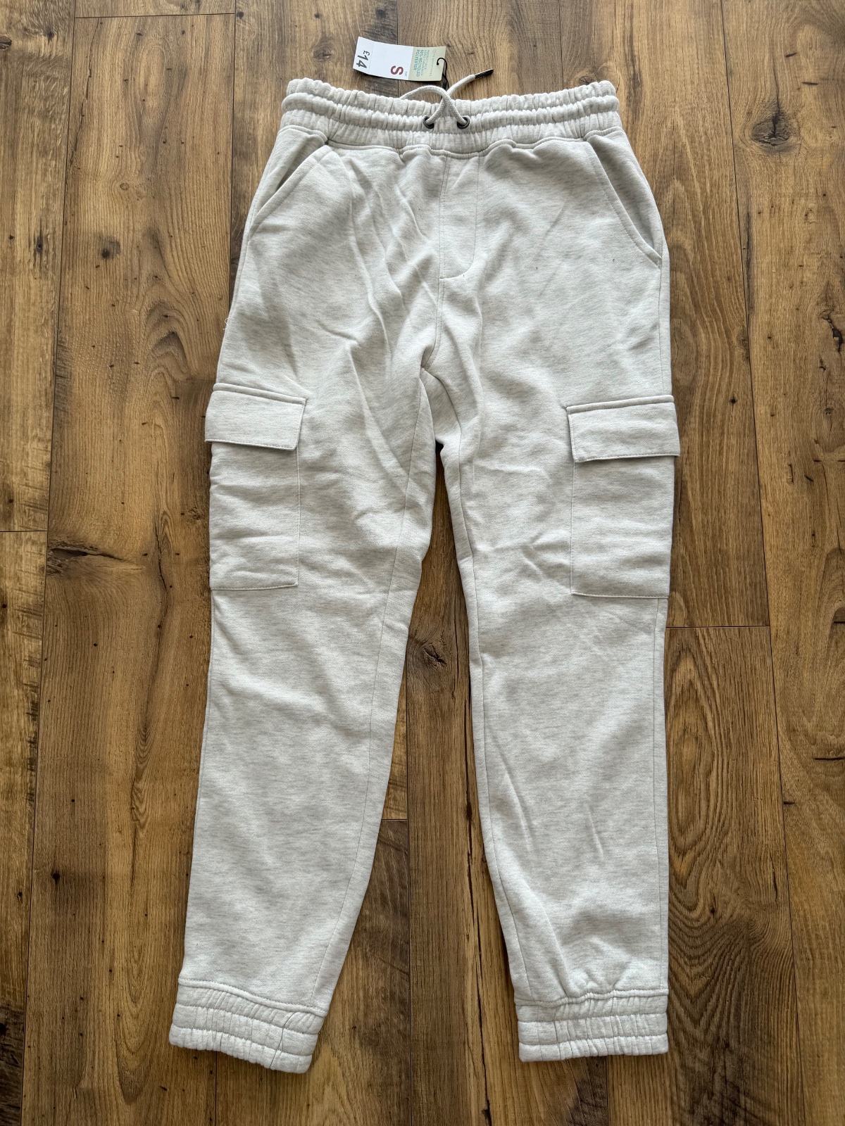 Super bavlnené tepláky, sú aj zateplené. Vačky na sáre z boku+aj hore. Pás na gumu+ šnúrku. Zo zadu na pravej strane nad vačkom sú mierne žmoľky, váha: 419 gr. ŠP- 39x2 cm D- 91 cm