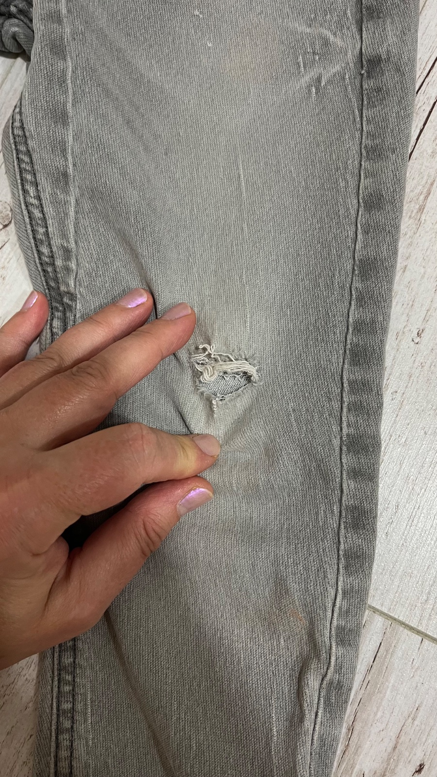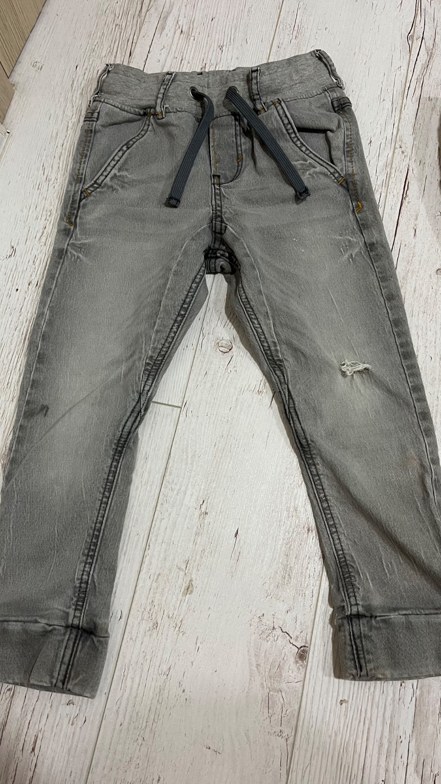 Rifle makksia riflovina, v pase guma. Vyšše kolena diera ale ta je od nová. Nohavice super stav, pas sa dá nastaviť. Farba sedí na foto.