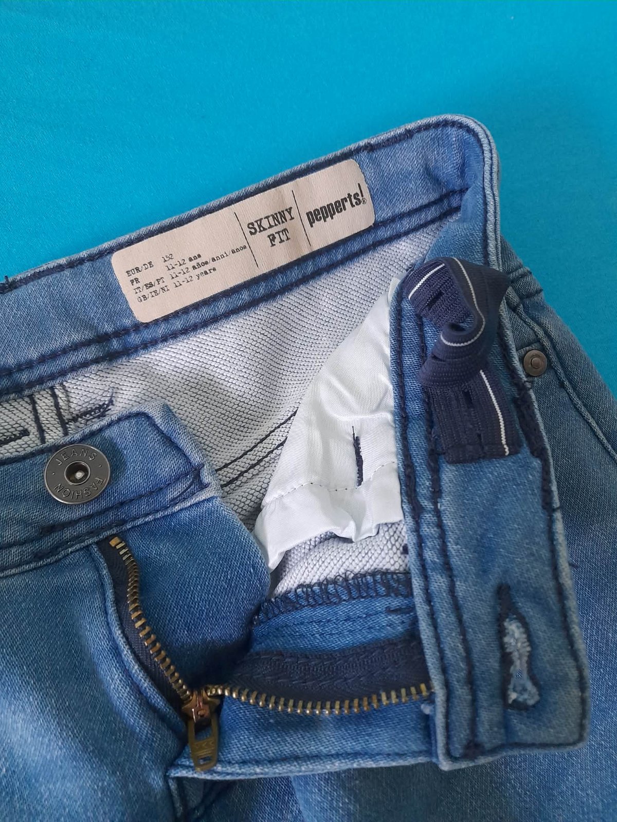 Predám použité, nepoškodené rifle, veľ.152, elastické, upravitelna gombikova guma v páse, rozmery - pás 33 +-, d 89,5 cm.